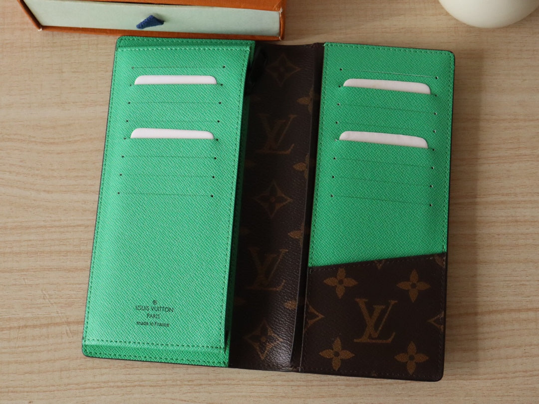 LV M81538 Brazza Wallet Green Monogram Canvas & Calfskin 224093