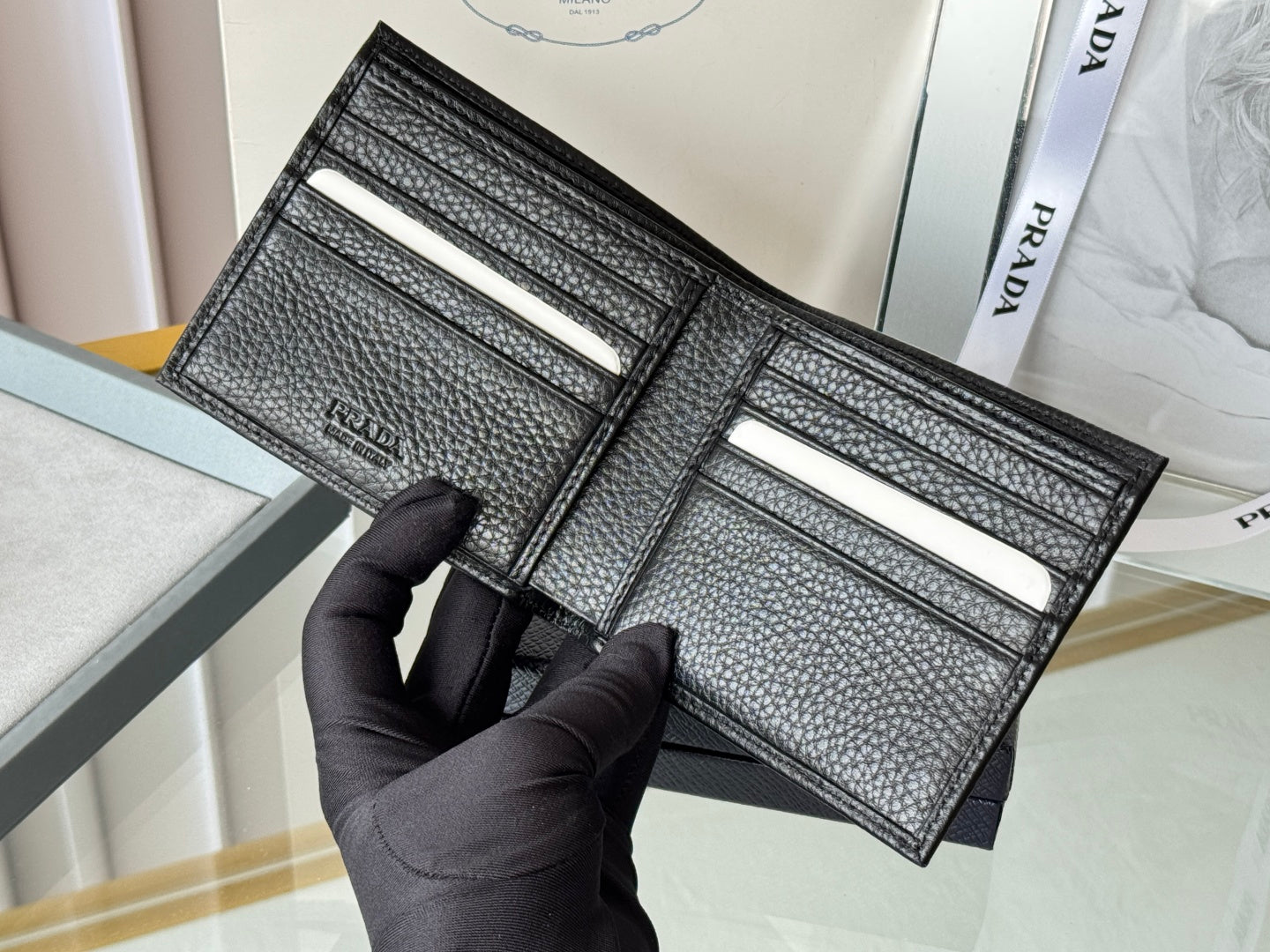 Pra 2M0513 Wallet 11cm Black lychee-grained cowhide HW