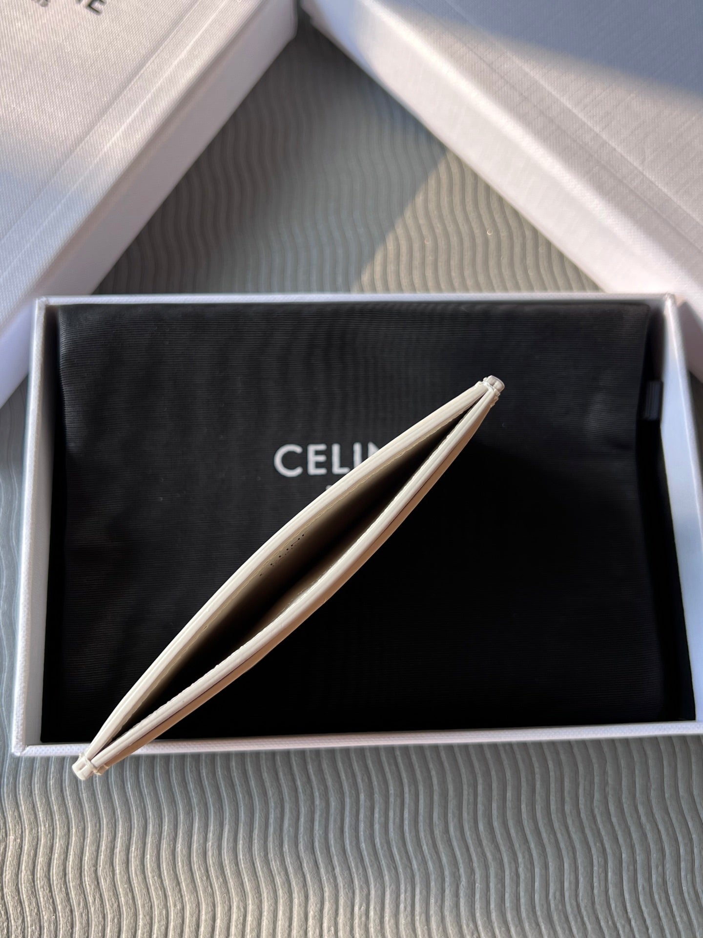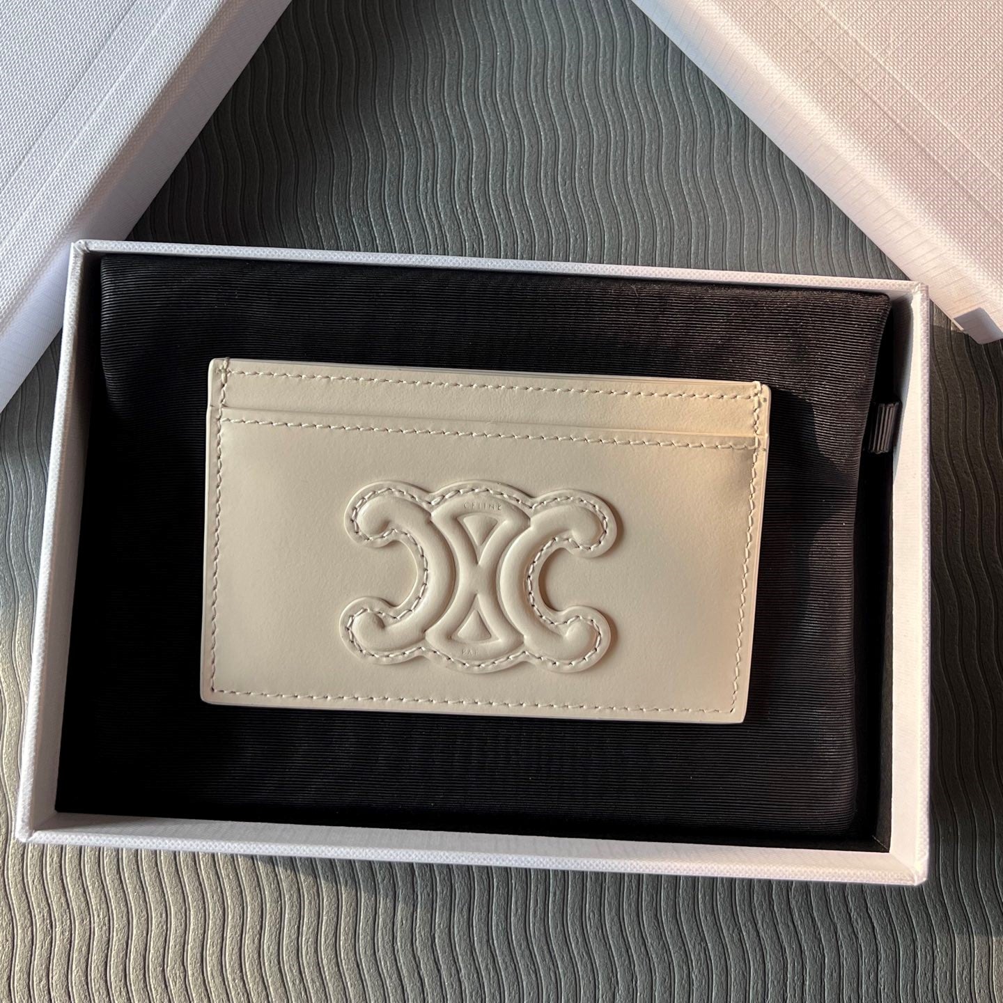 TRIOMPHE 10B703 Card Holder Beige Cowhide Leather