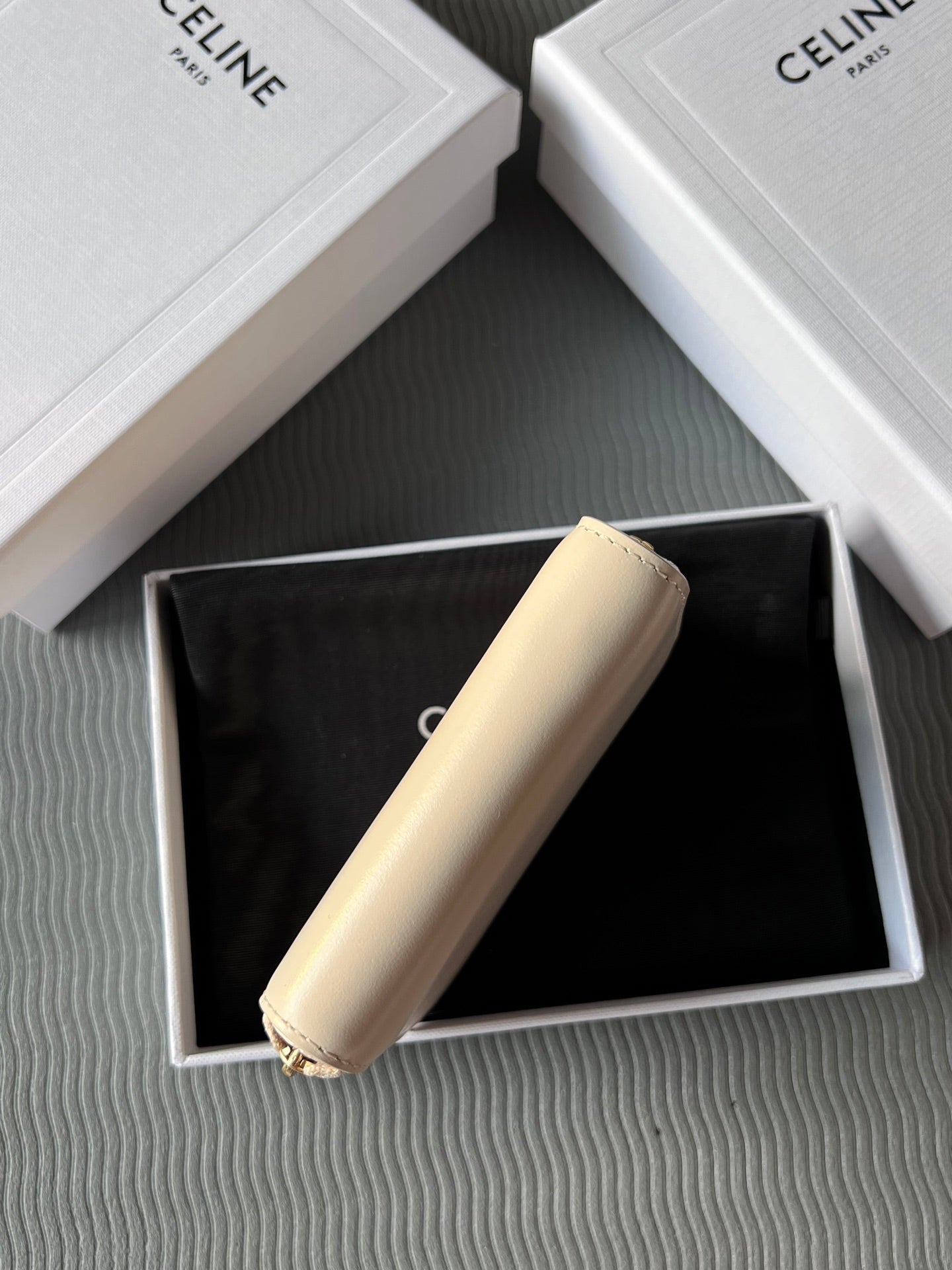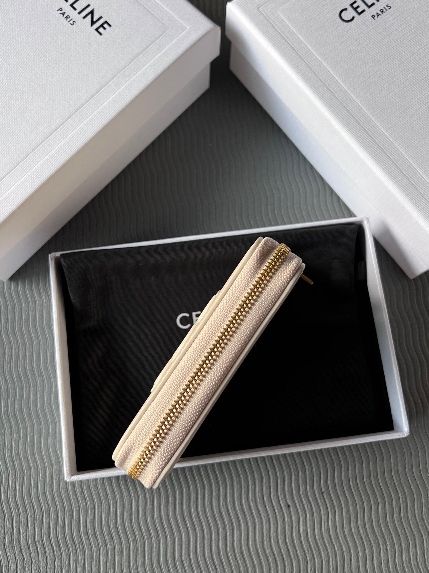 TRIOMPHE Compact Zipped Wallet Beige Cowhide Leather