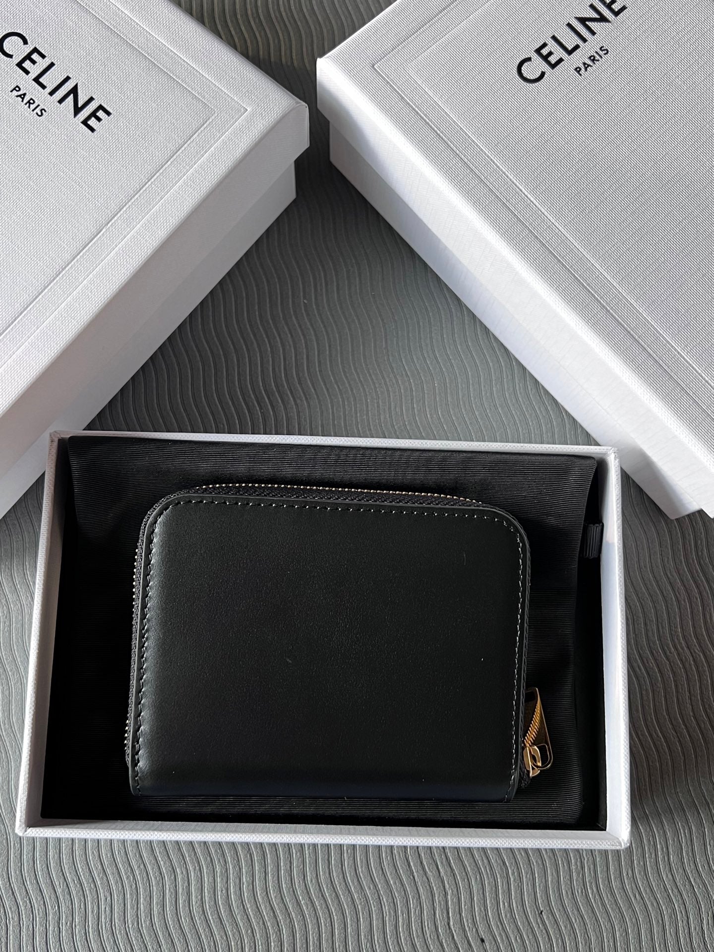 TRIOMPHE Compact Zipped Wallet Black Cowhide Leather