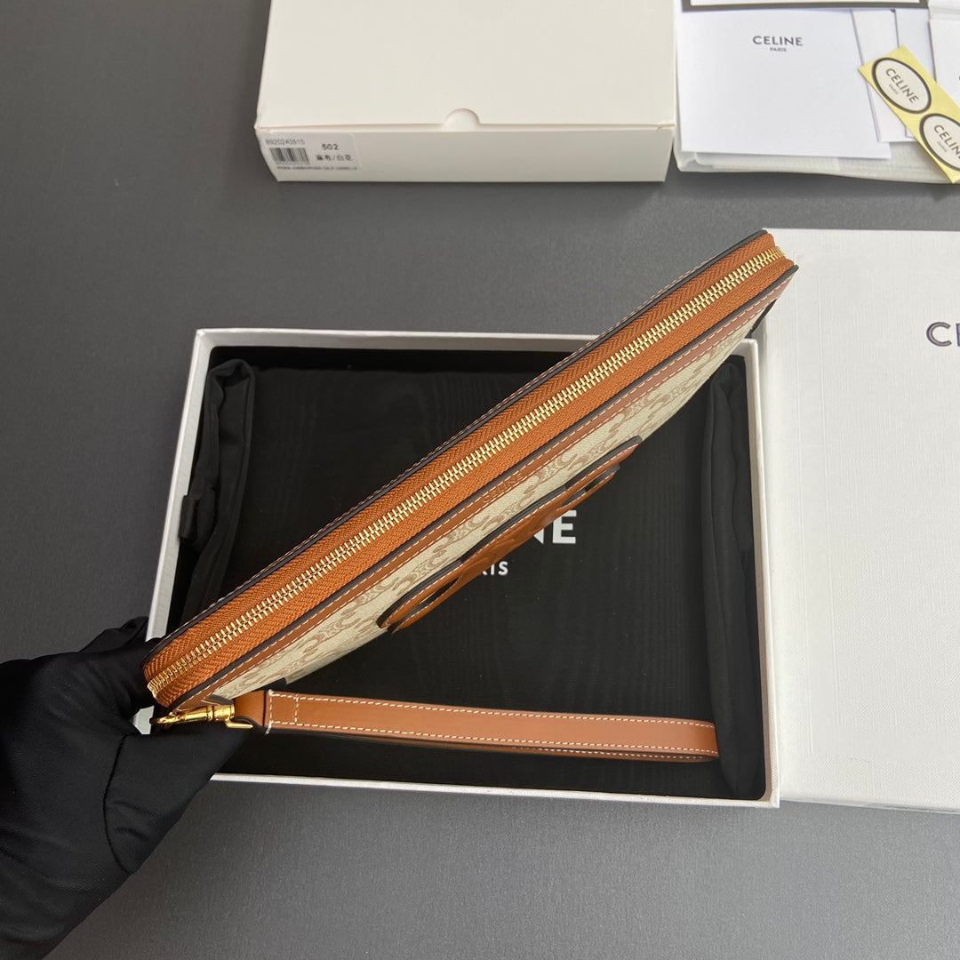 TRIOMPHE PRINT Small Pouch Tan Beige Cowhide