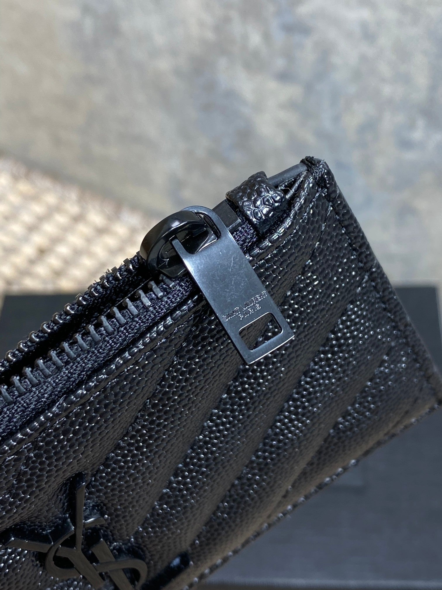 YSL Zip Coin Case With Card Full Black Caviar Cowhide GHW