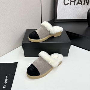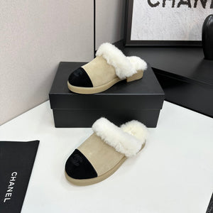 CC furry mule light beige black suede and wool 532577