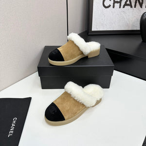 CC furry mule beige black suede and wool 532576