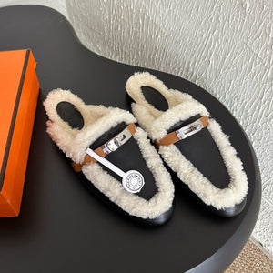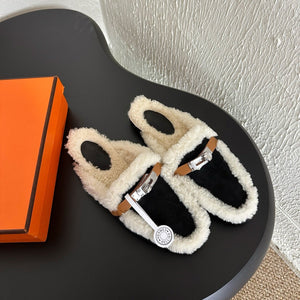 HM Oran slippers sliver buckle white wool