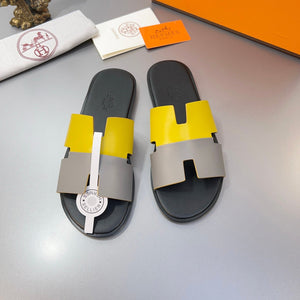 HM Oran Slippers in Light Gray and Yellow Calfskin 735646