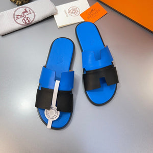 HM Oran Slippers in Blue and Black Calfskin 735649