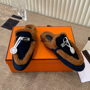 HM Oran slippers sliver buckle dark brown wool