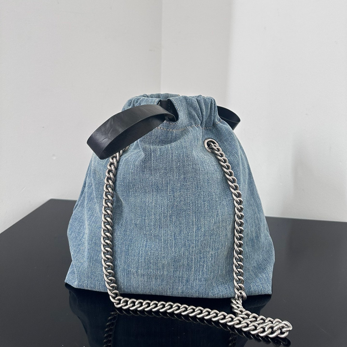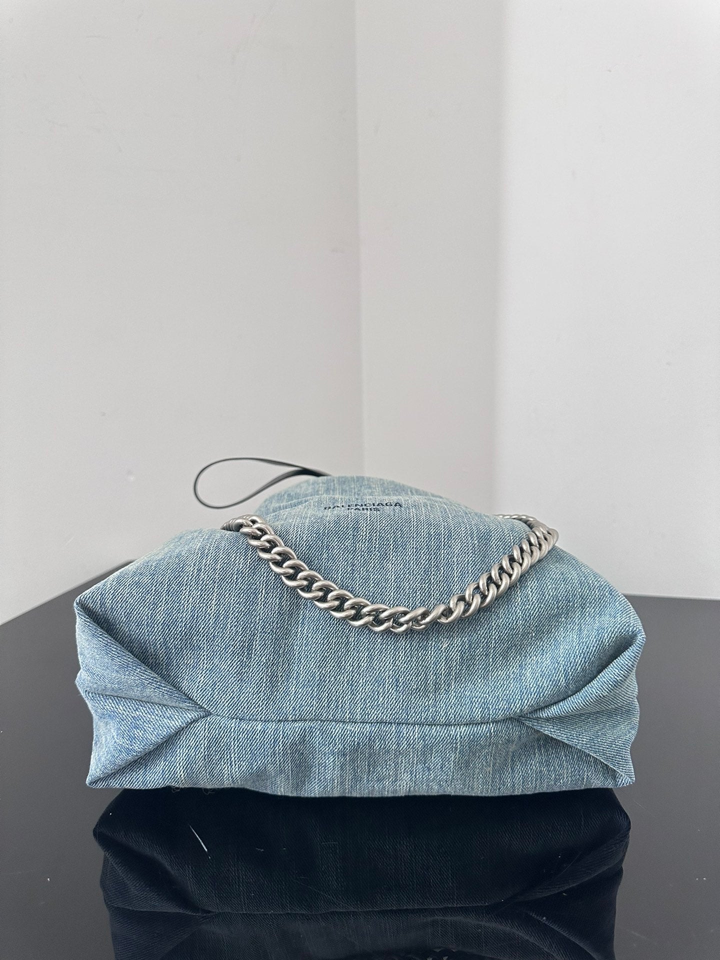 CRUSH SMALL TOTE BAG 26 IN BLUE WASHED DENIM SILVER HARDWARE