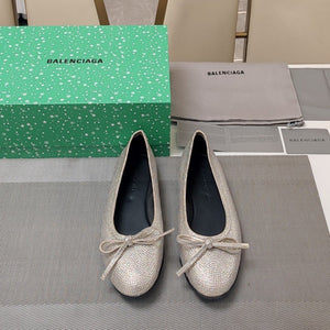 Balen 25 bow ballet flat attached rhinestones in grey calfskin 184484