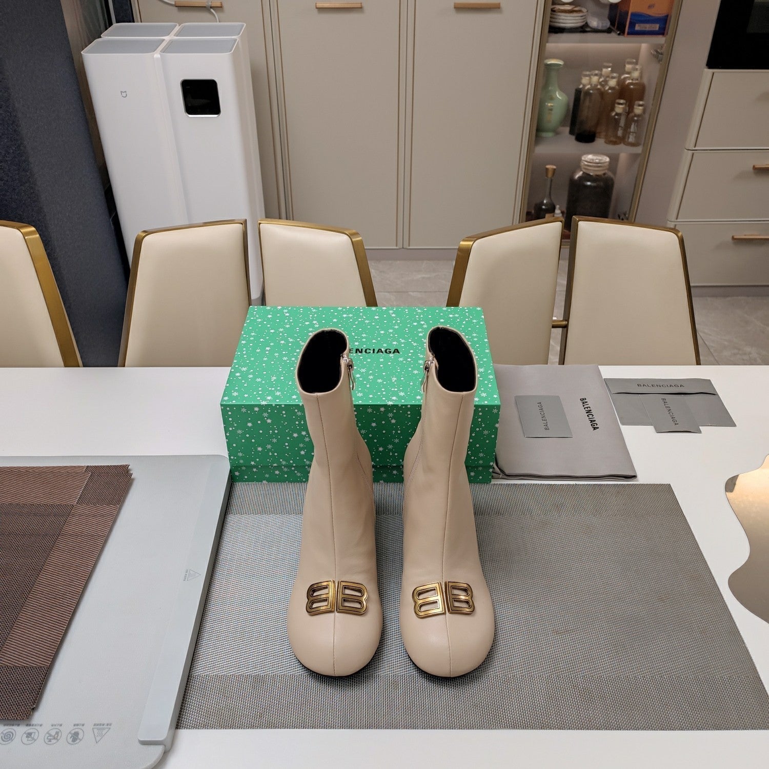 ROUND-TOE HIGH HEEL BOOTS IN BEIGE SMOOTH LAMBSKIN