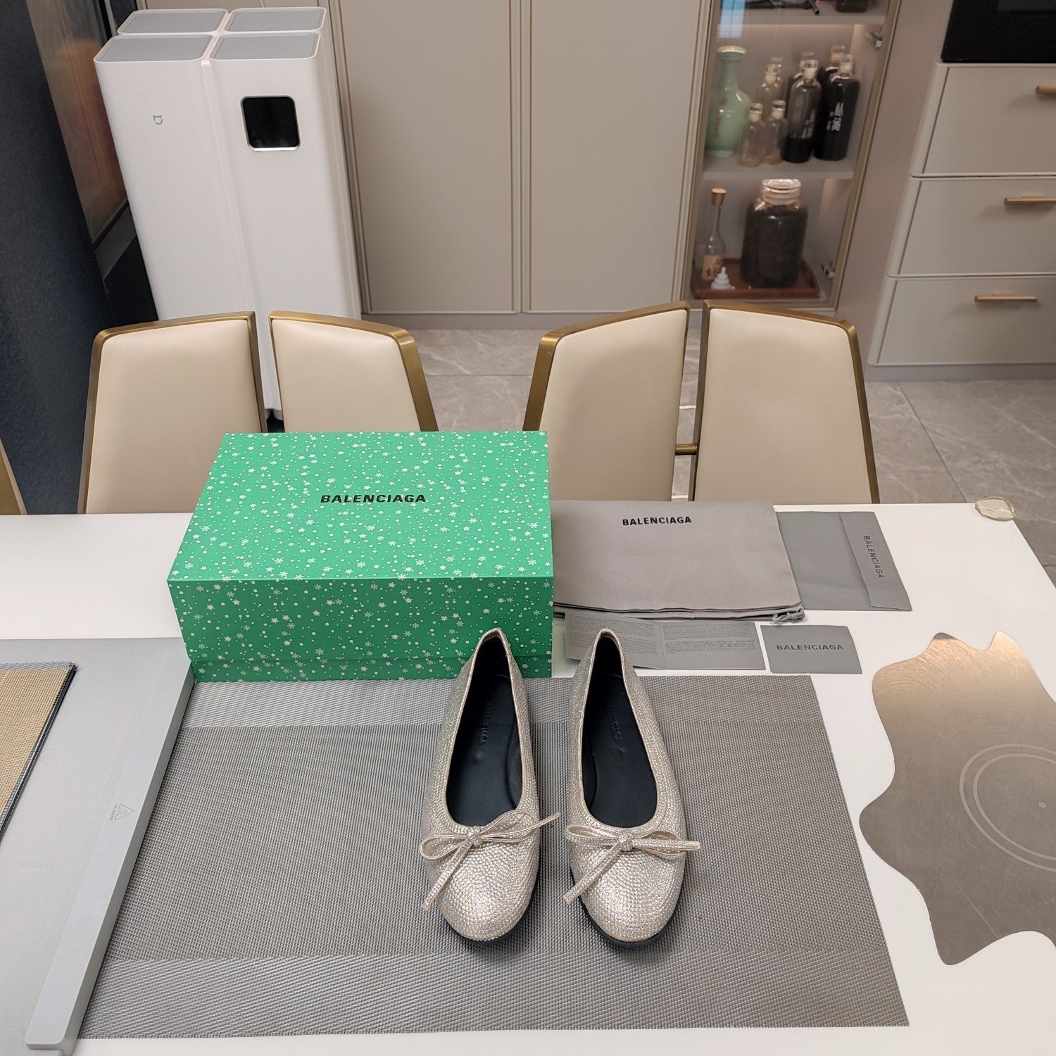 Balen 25 bow ballet flat attached rhinestones in gold metallic calfskin 184485