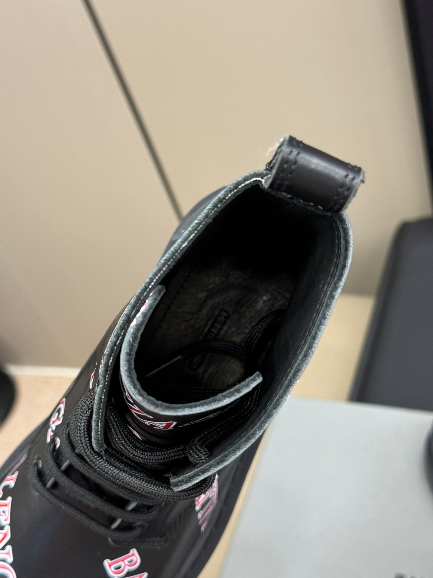 CHUNKY BOOTS IN BLACK SMOOTH CALFSKIN RED LOGO PRINT