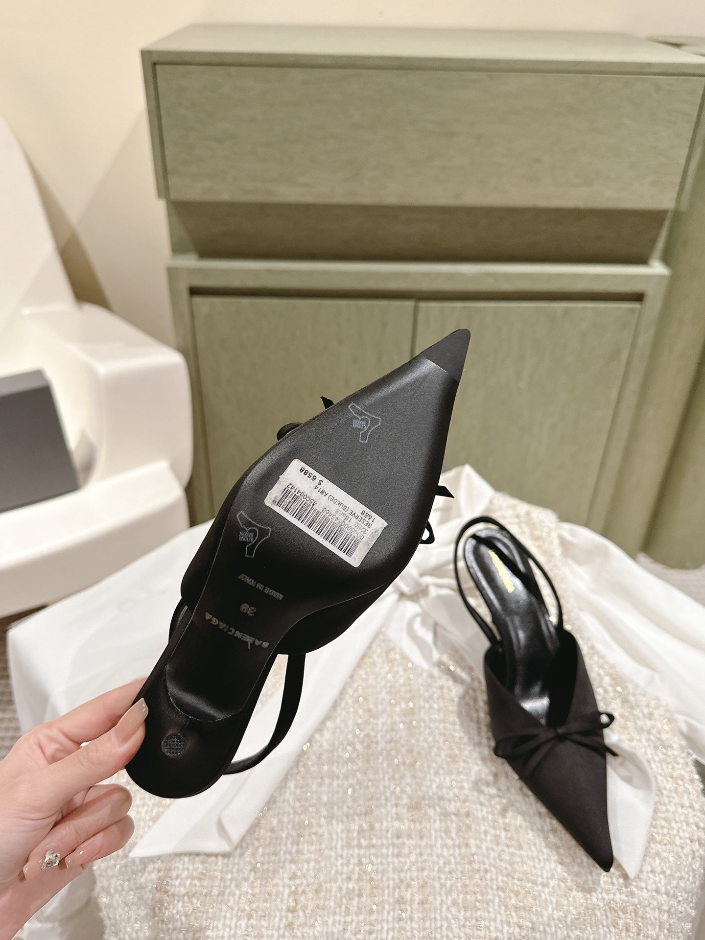 POINTED HIGH SLINGBLACK WITH BOW IN BLACK SILK