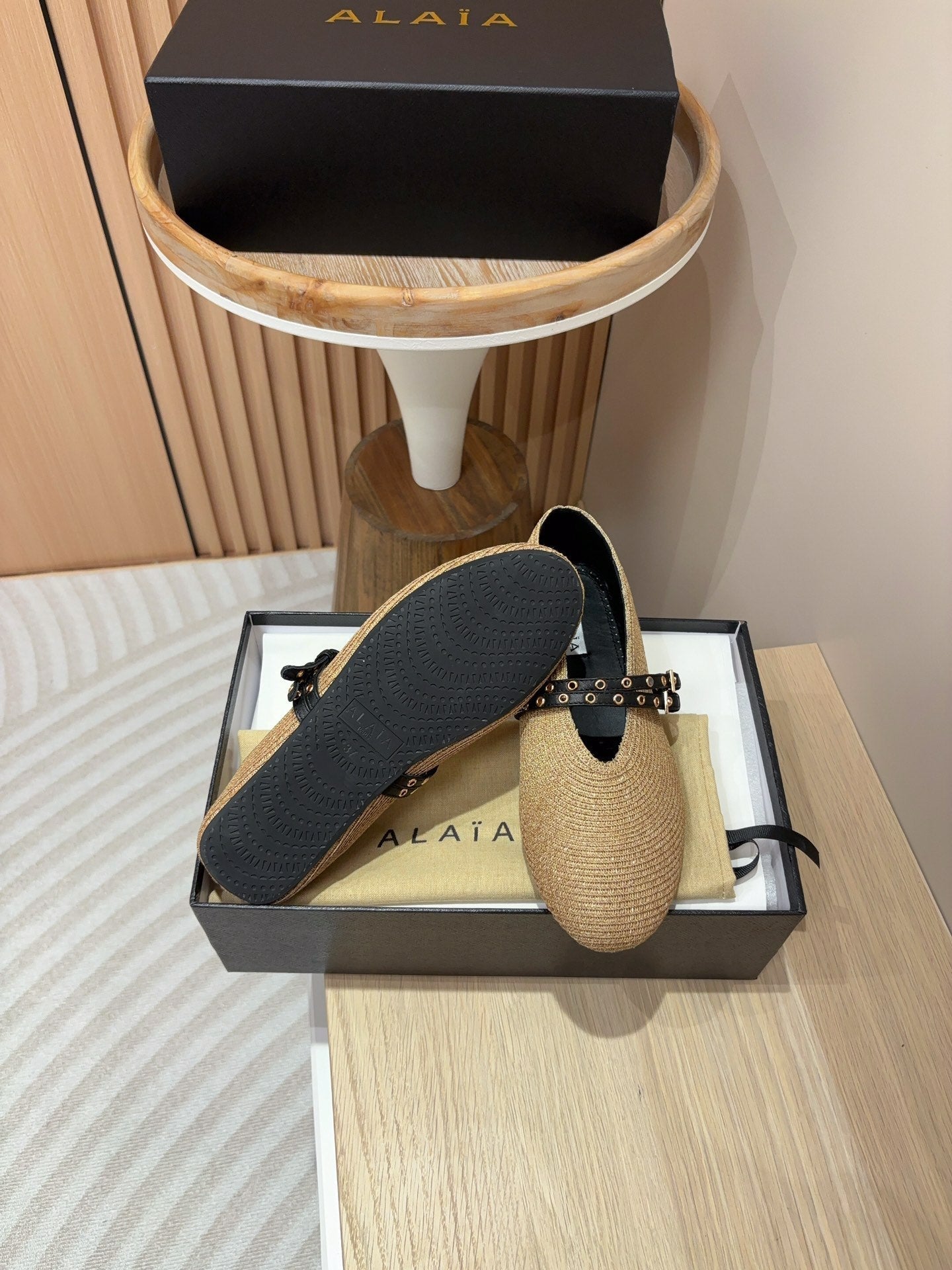 alaia ballet flat beige paper straw