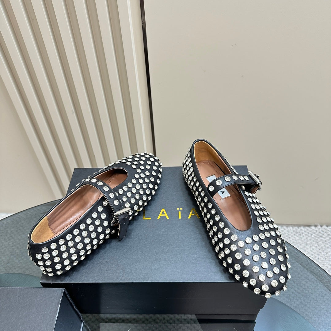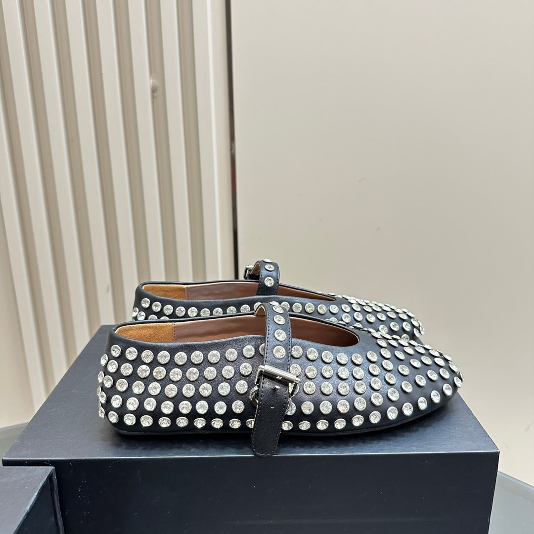 • Color: Black, Brown/White • Material: Suede With Rhinestones, Lambskin • High hell: 0,5CM • Size: 34 - 43