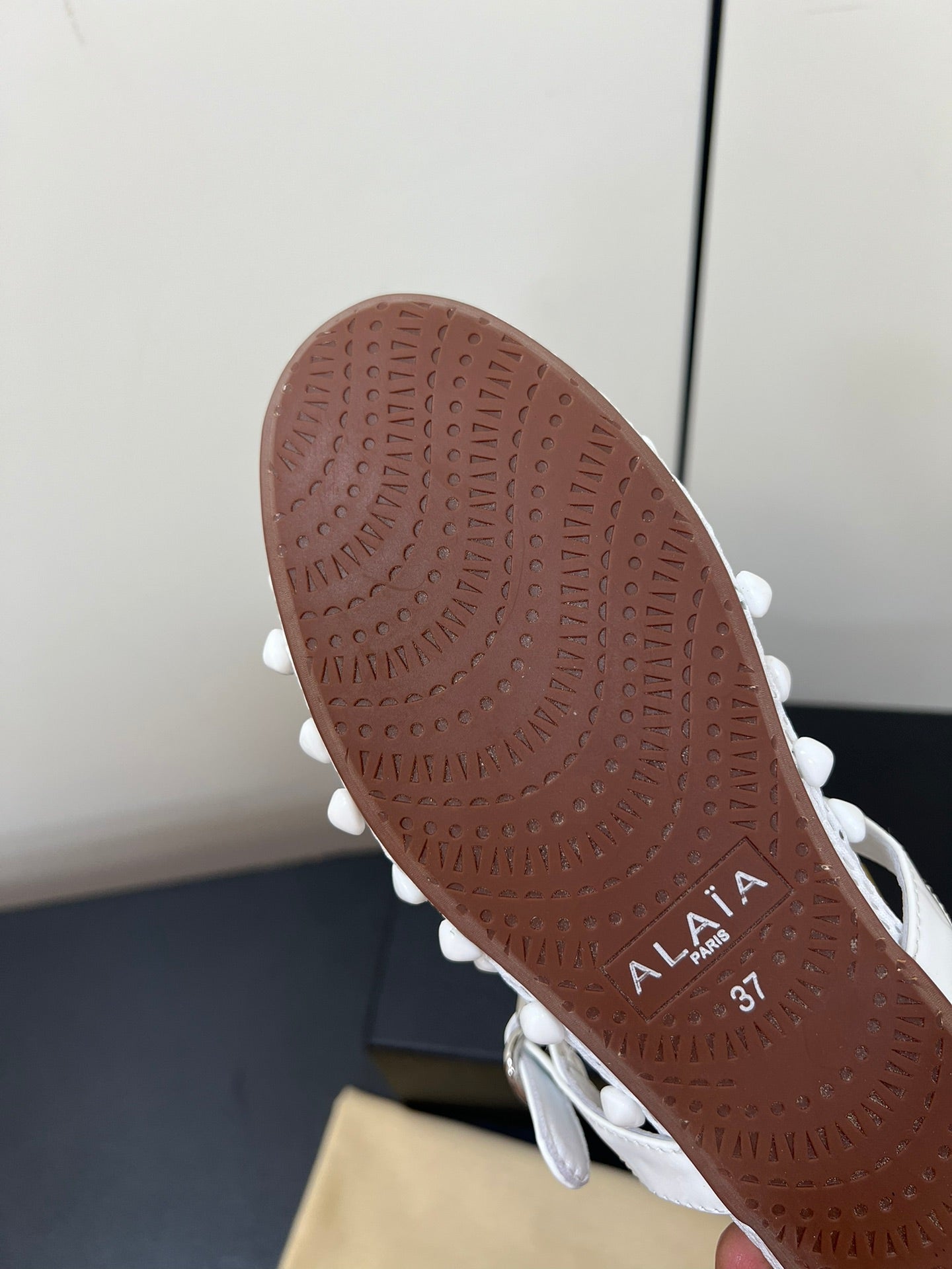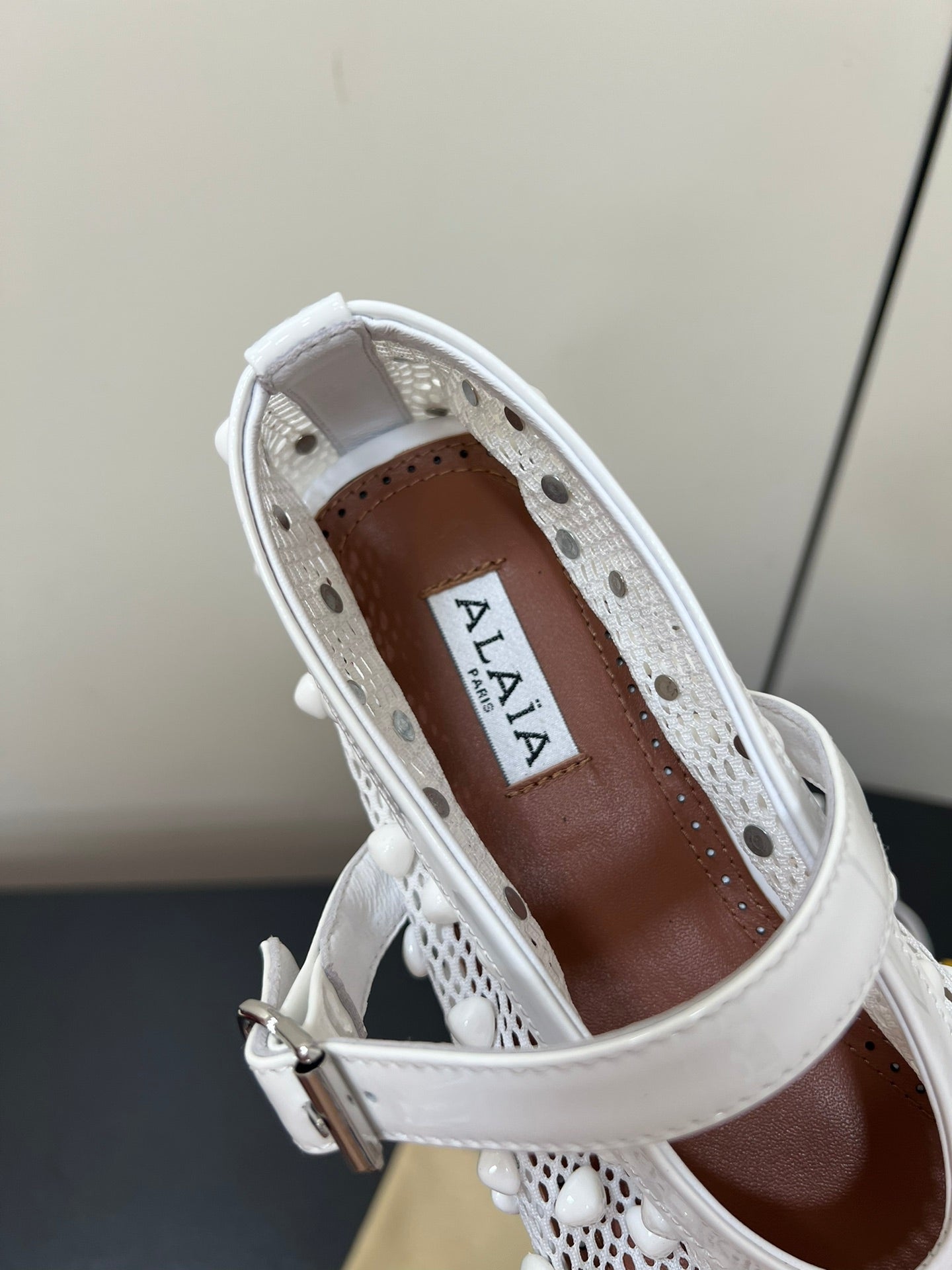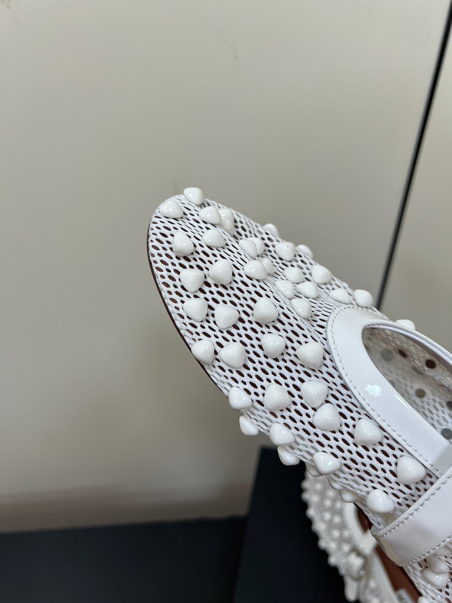 • Color: White, Brown • Material: Studs On Fishnet, Lambskin • High hell: 0,5CM • Size: 35 - 42