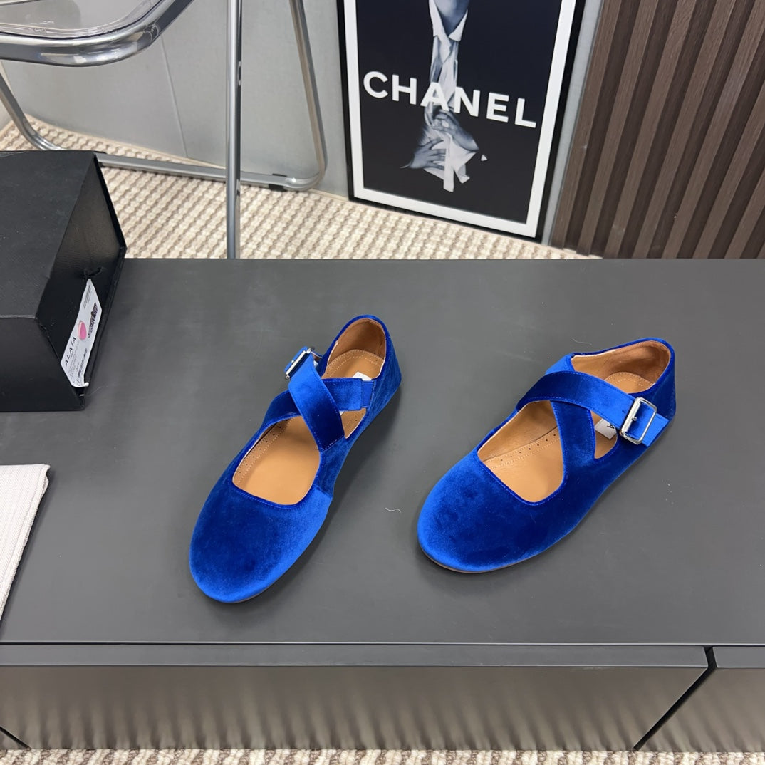 • Color: Blue, Dark Beige • Material: Velvet, Lambskin • High hell: 0,5CM • Size: 35 - 42