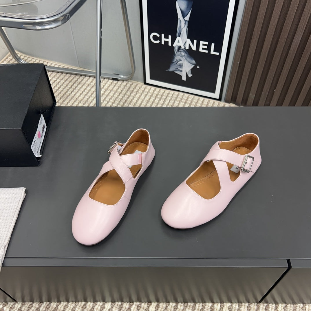 Alaila Criss Cross Ballet Flats In Light Pink Lambskin 996035