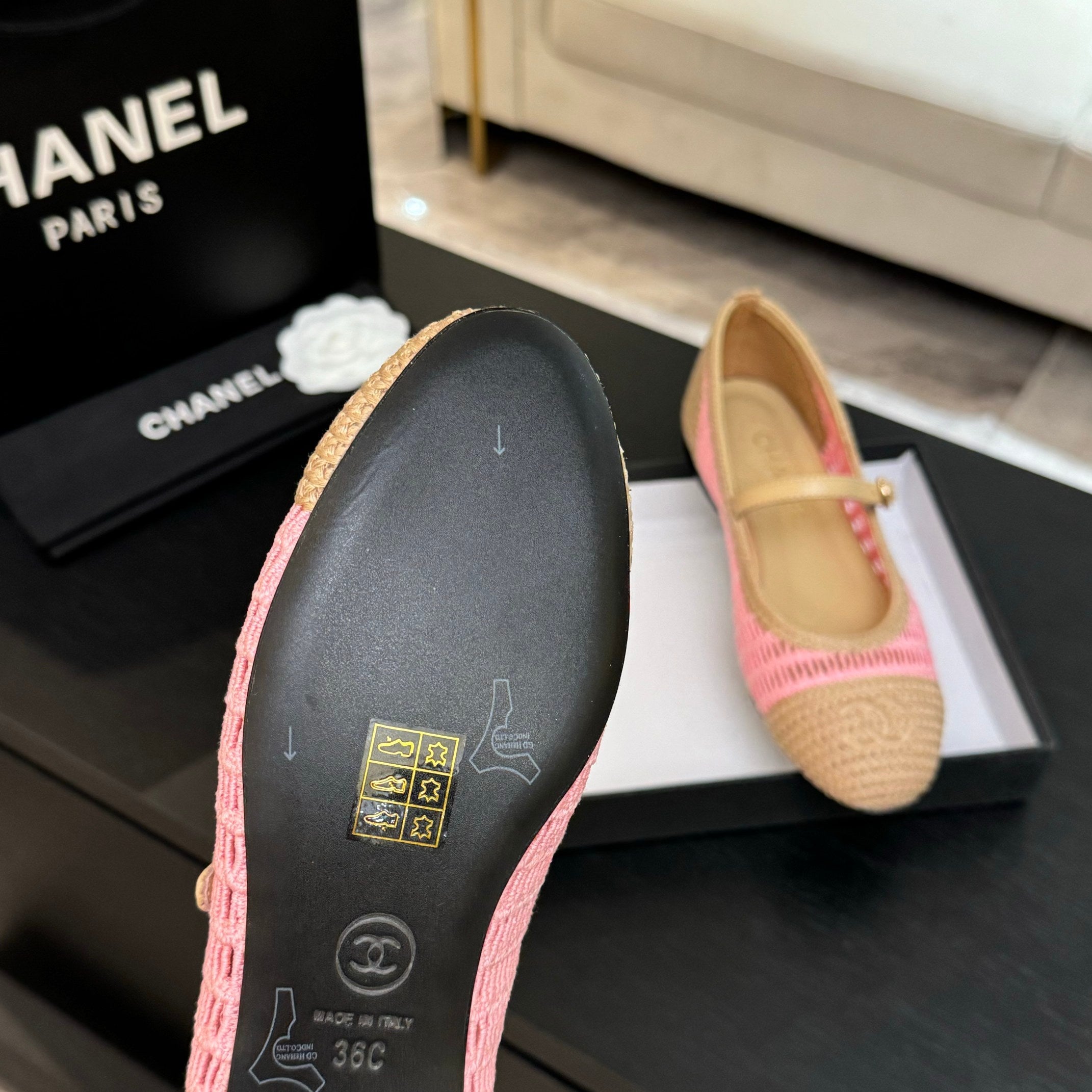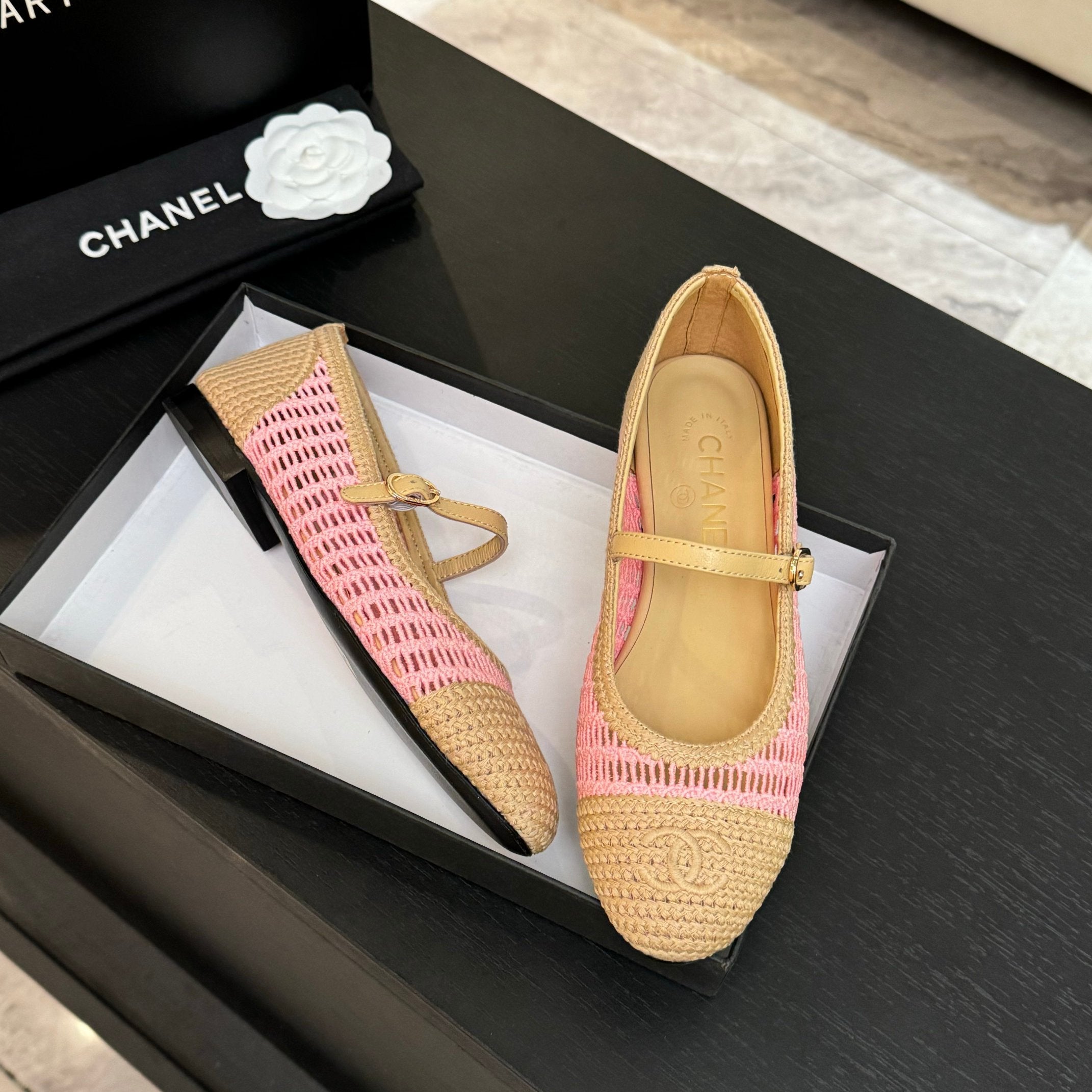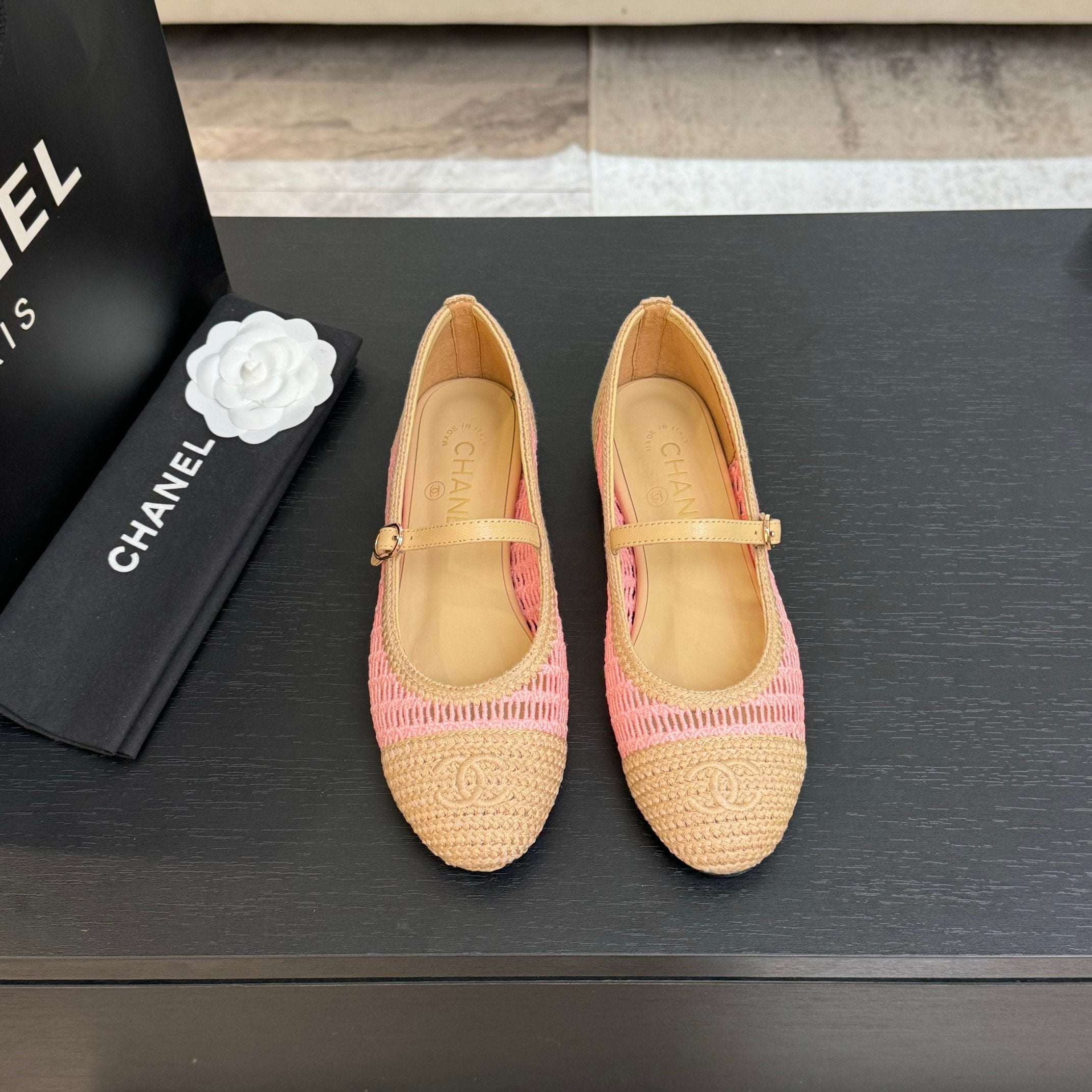 CC 25P Mary Jane 15mm Beige Pink Raffia 373784