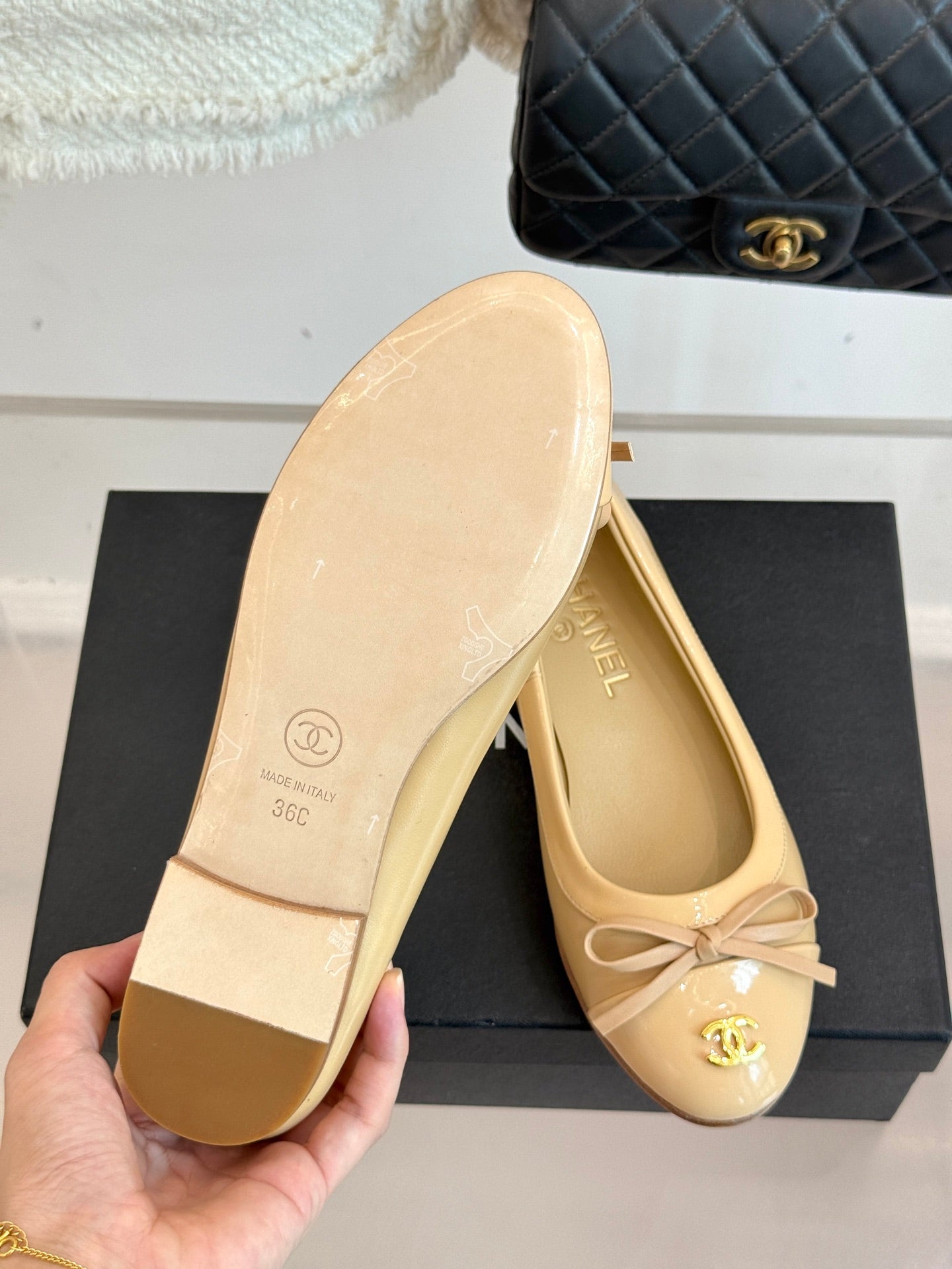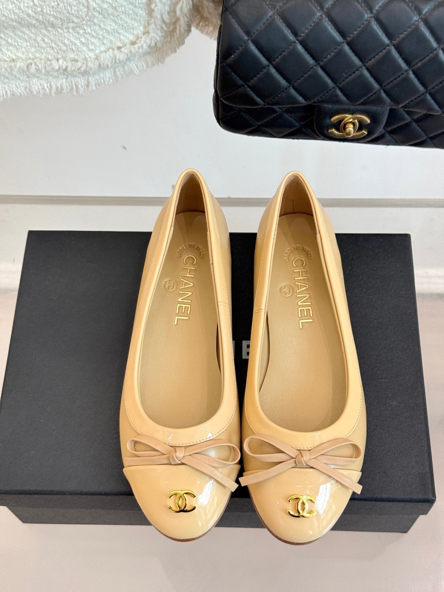 Chanel 25 Bowknot Ballet Flat Beige Sheepskin 473066