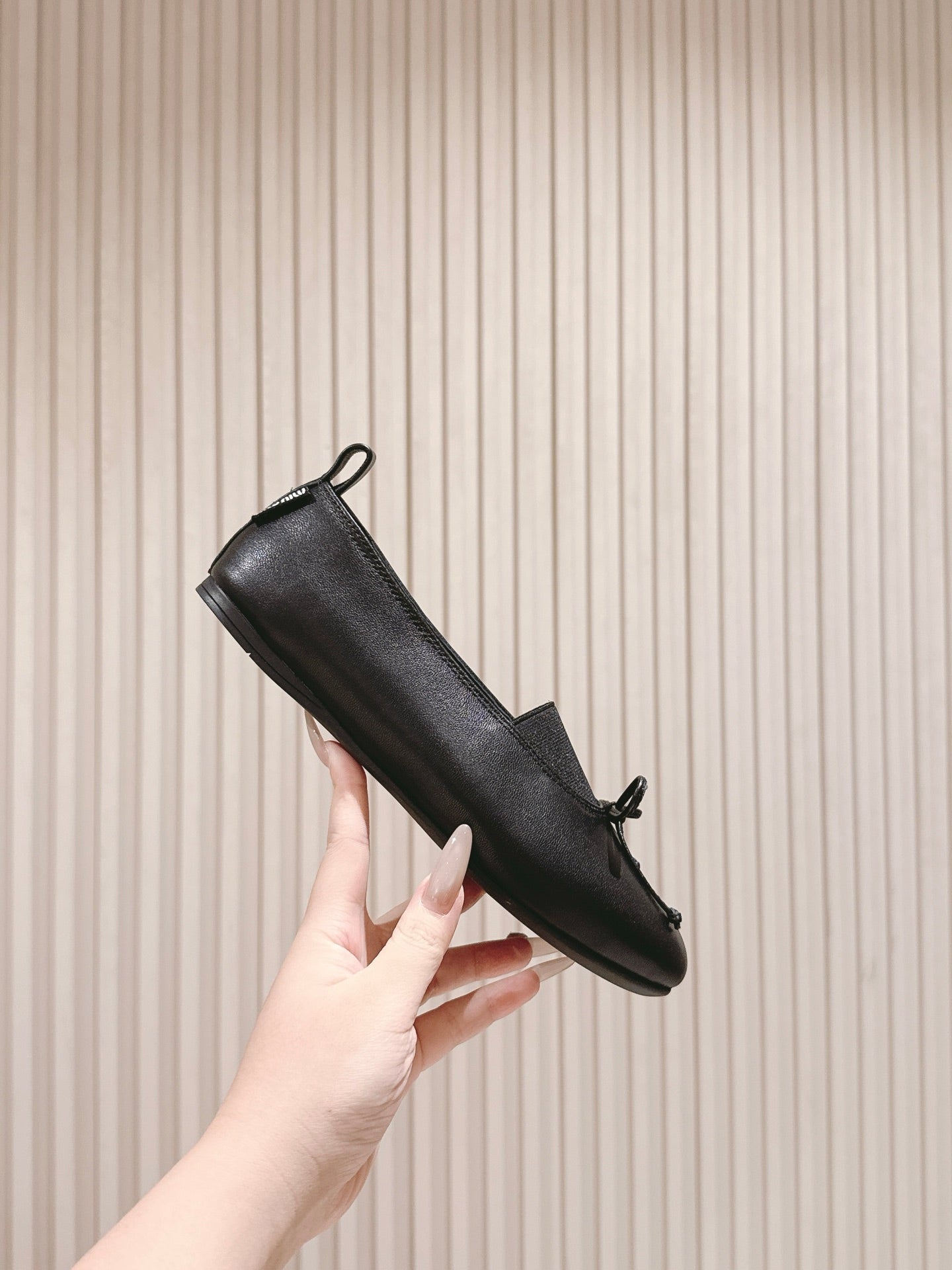 Miu Élan Bow-Detail Ballet Flat Black Cowhide 445803