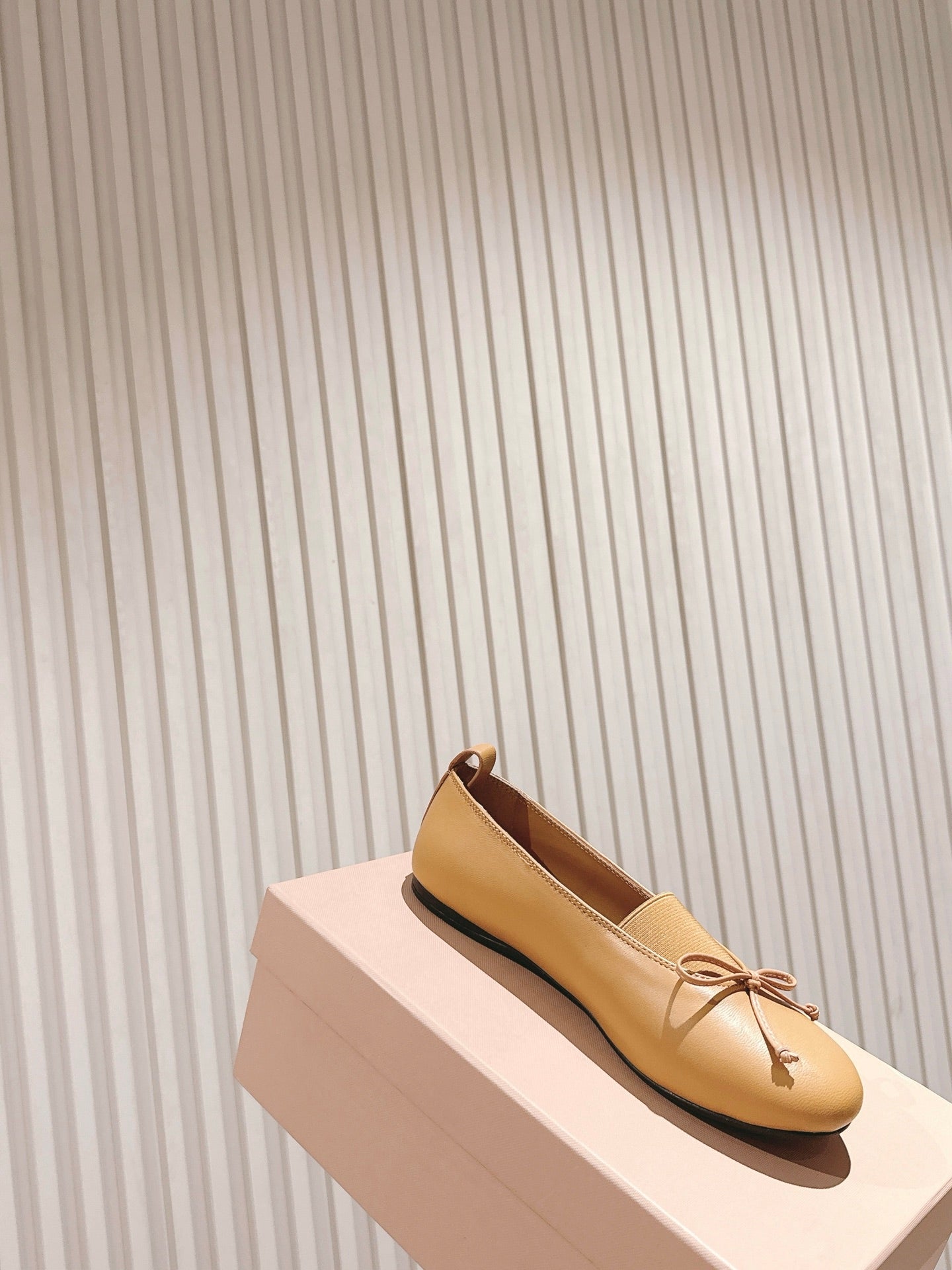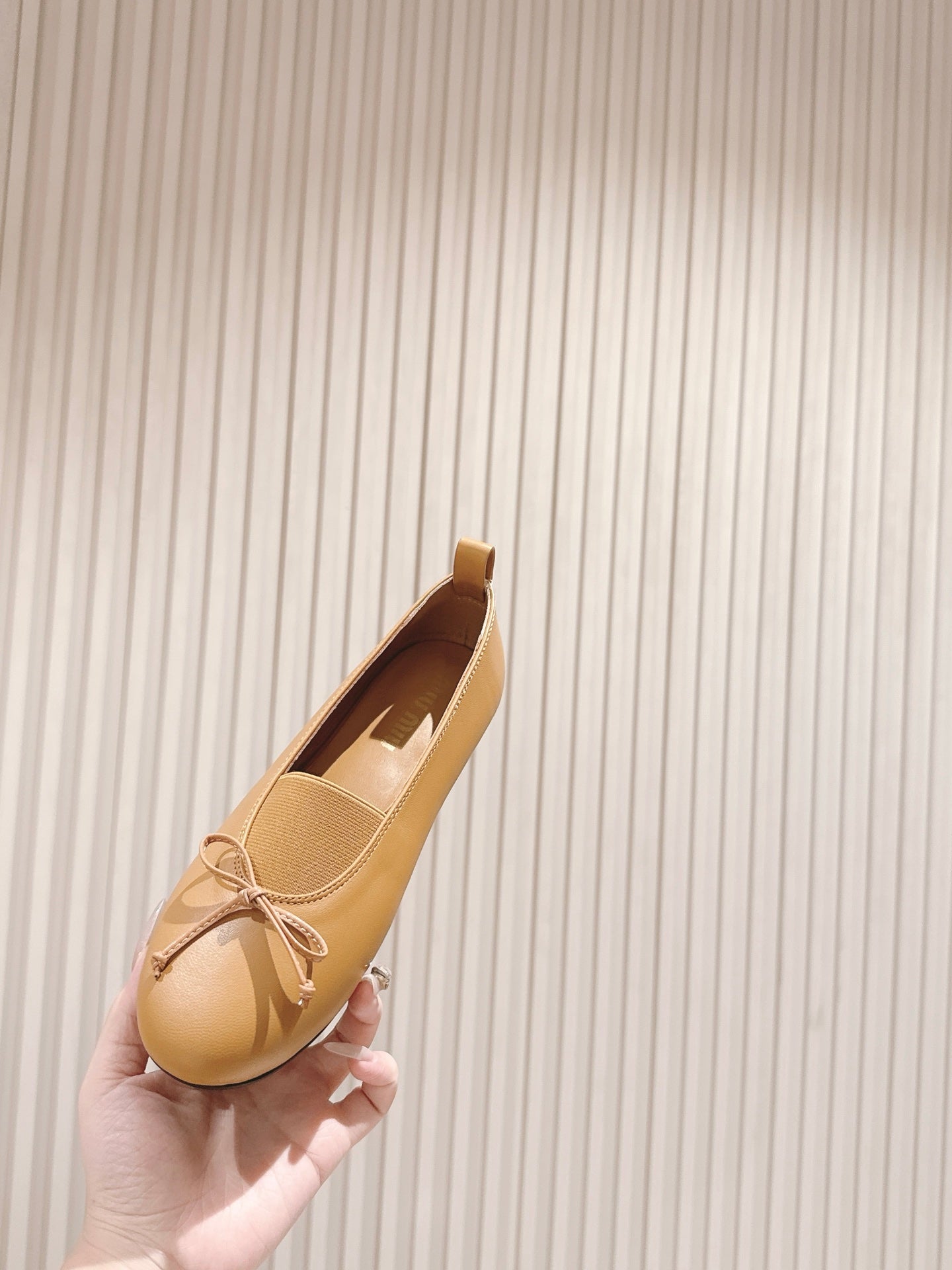 Miu Élan Bow-Detail Ballet Flat Light Brown Cowhide 445802