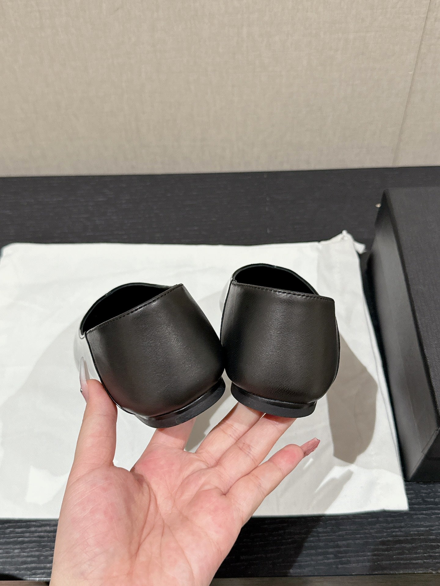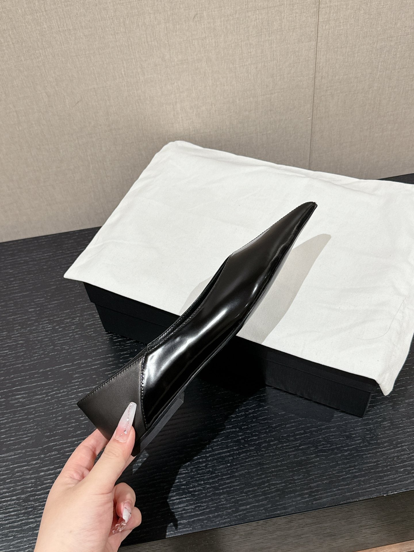 SL NOUR POINTED TOE BALLET BLACK CALFSKIN