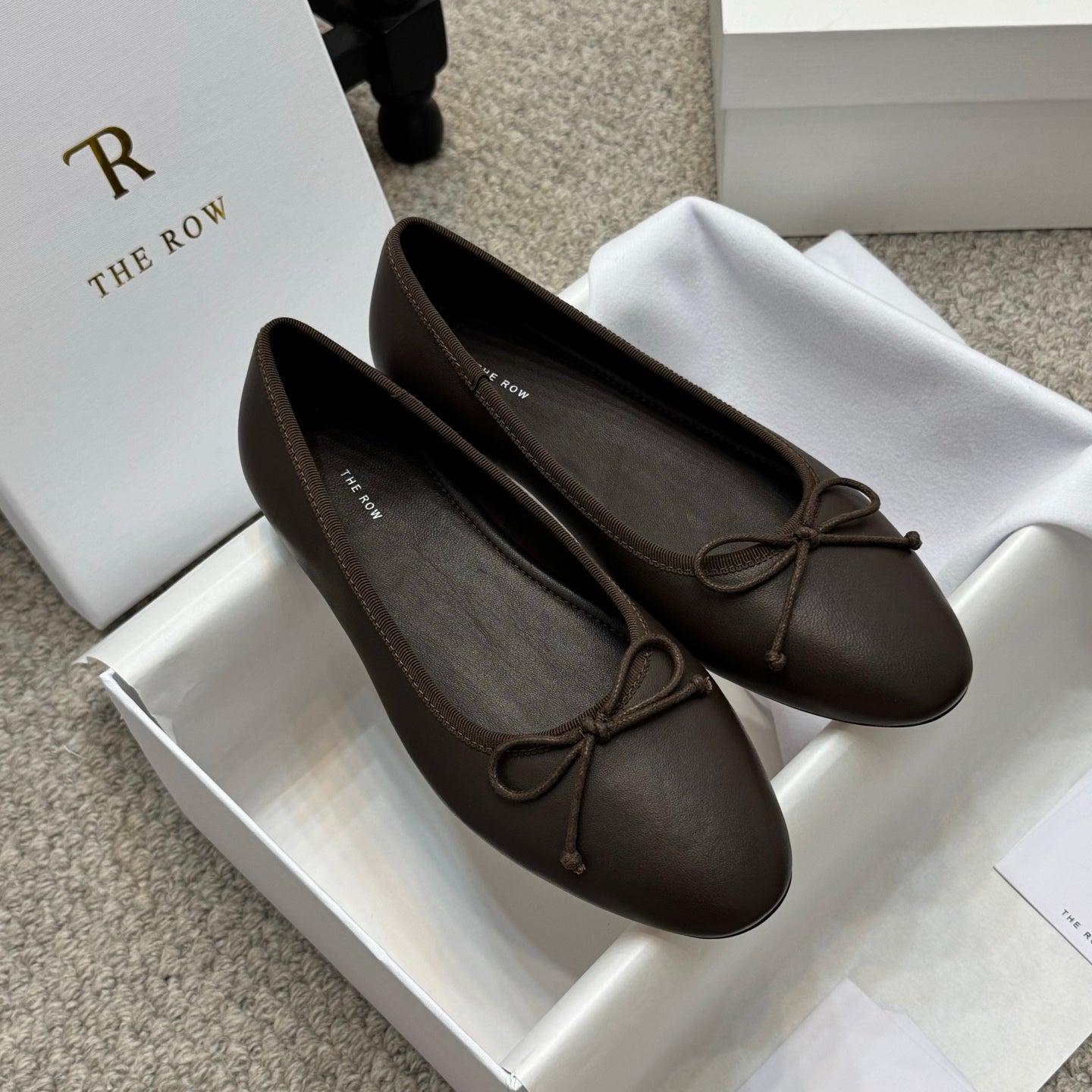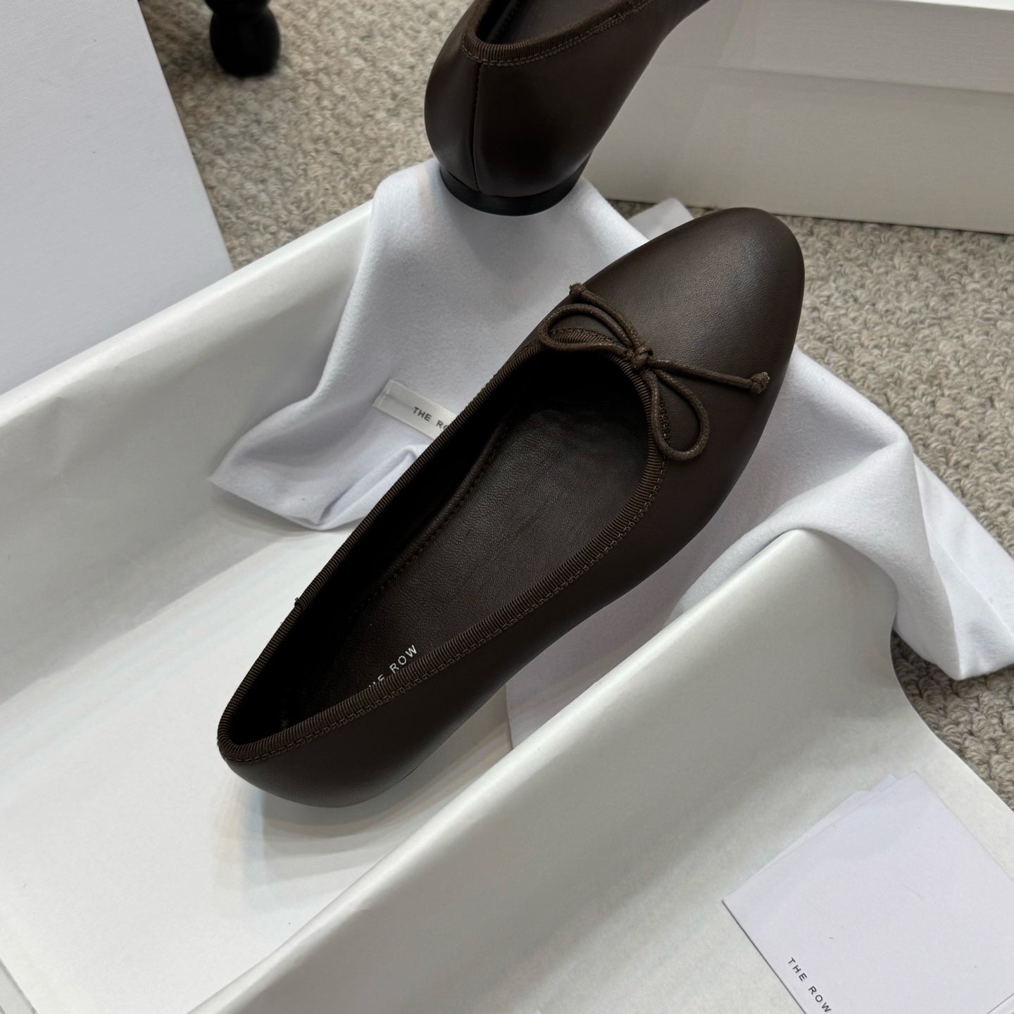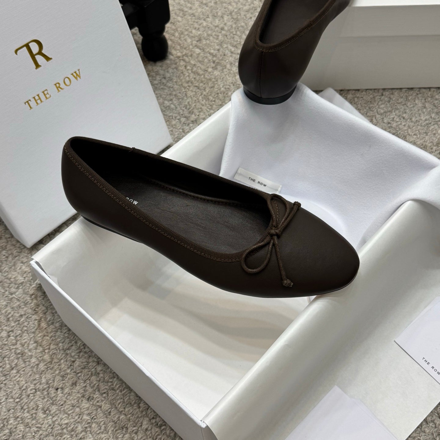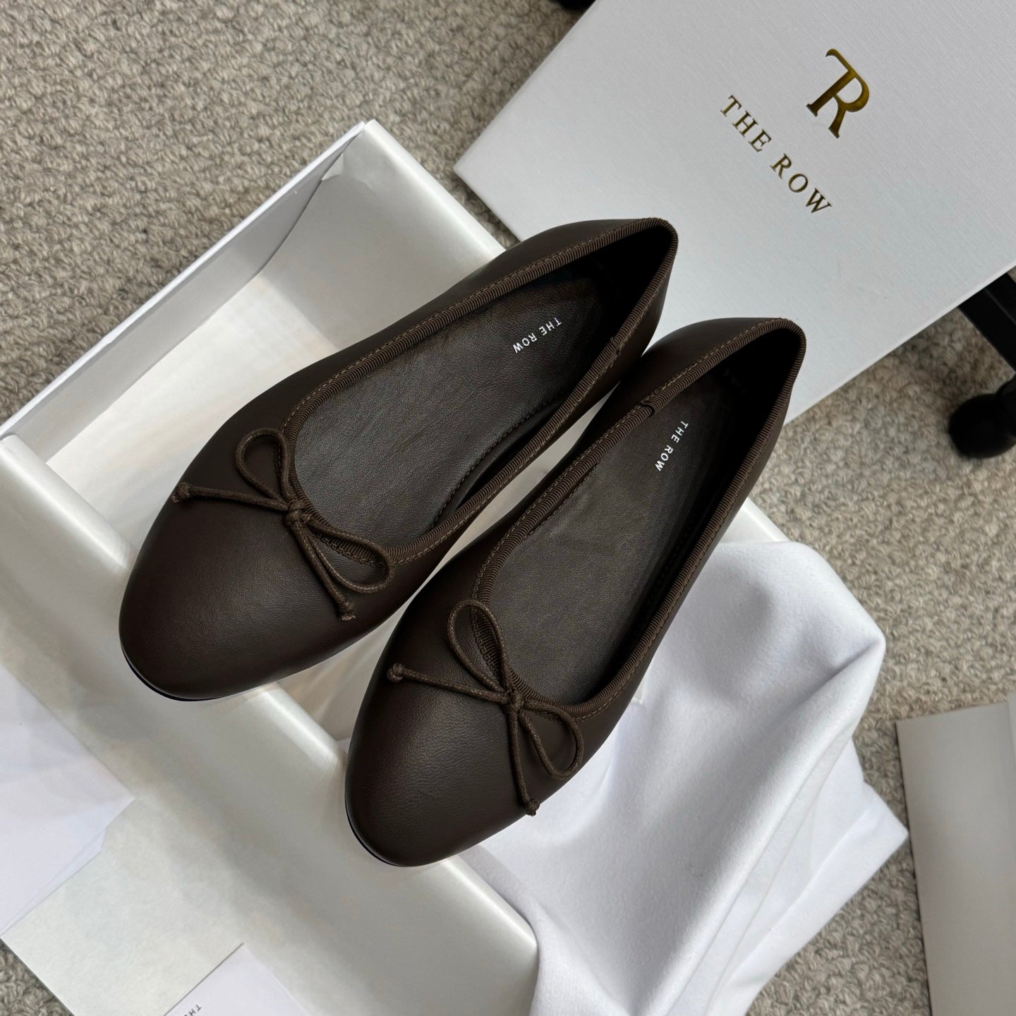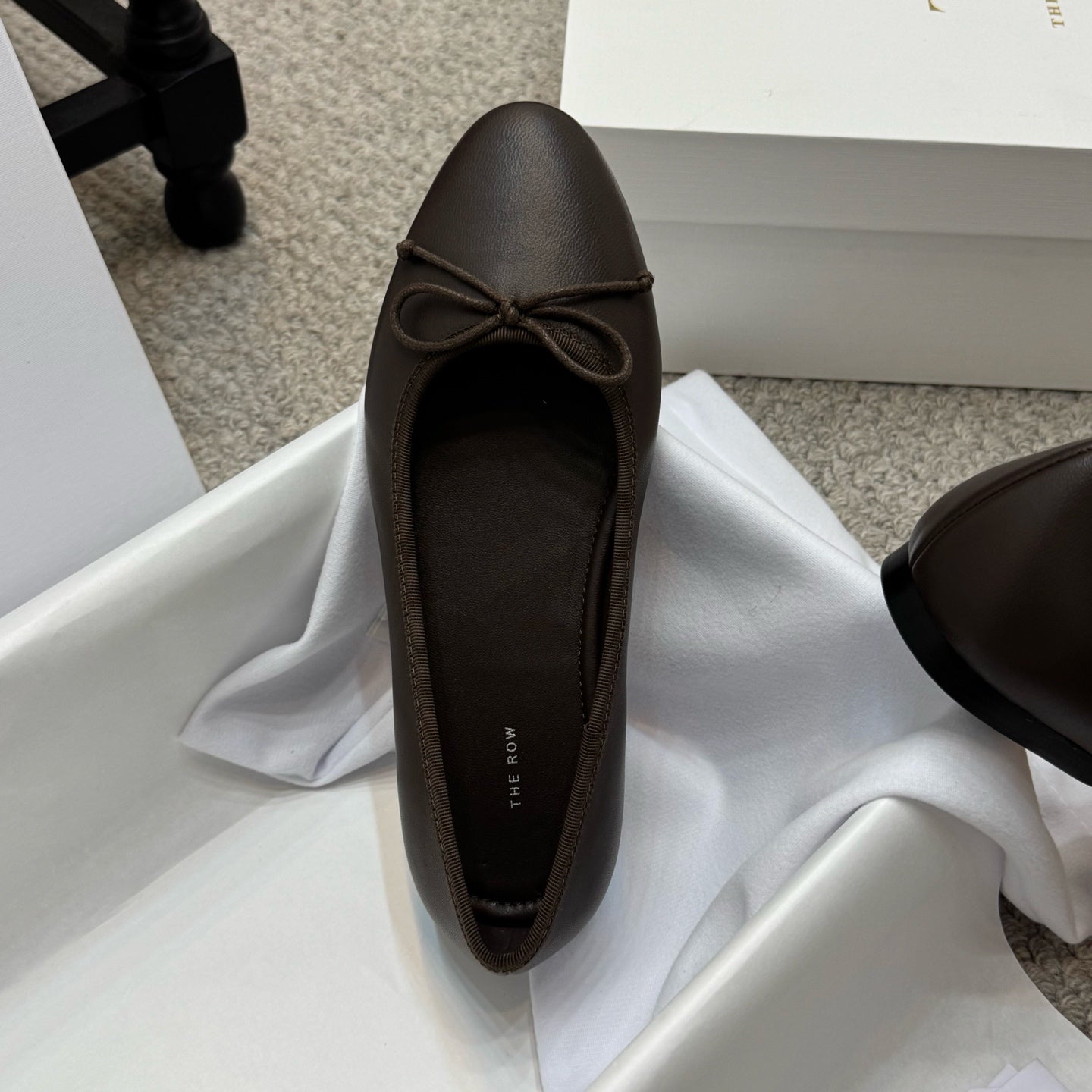 The Row Ballet Flats Bow Dark Brown Cowhide 290729