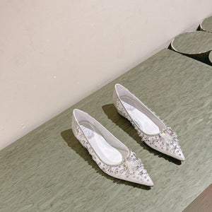 RC 25C Slingback Flat Shoe White Silk Rhinestones 268075