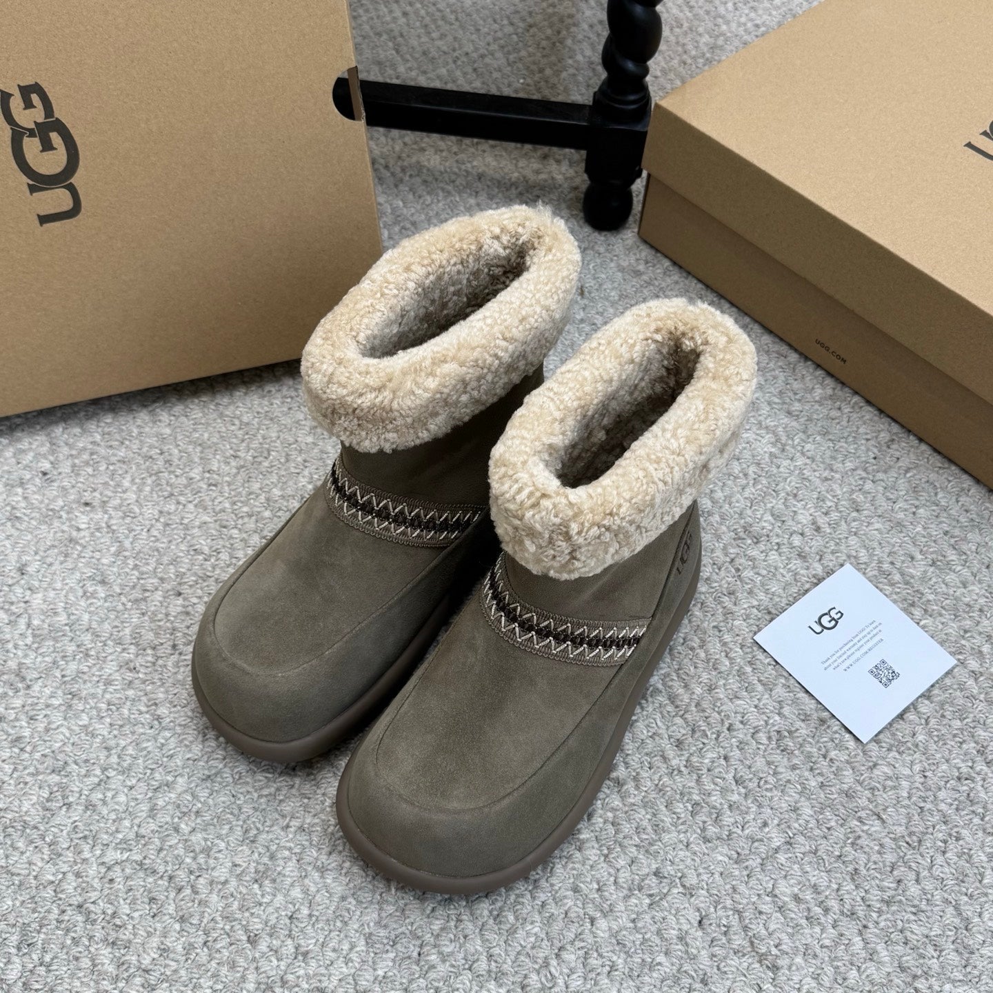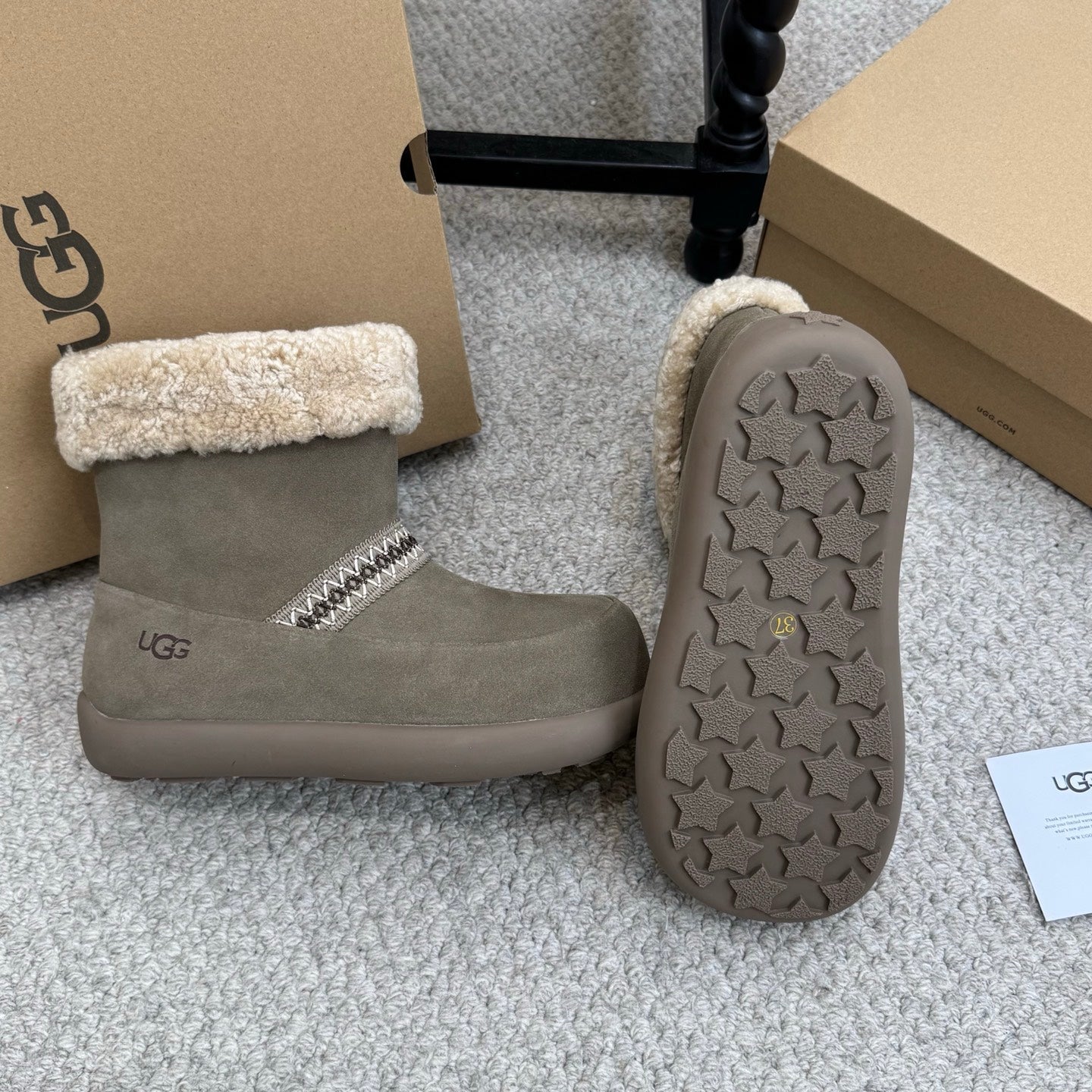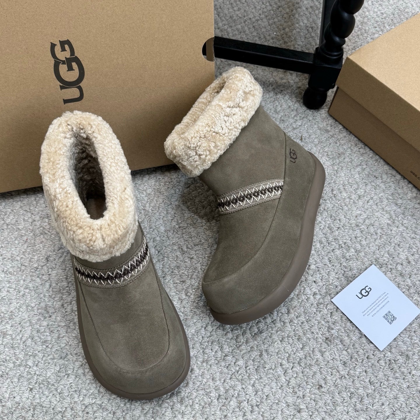 UGG 25ss Ankle Boots Muted Grey Sheep Fur Suede 523104