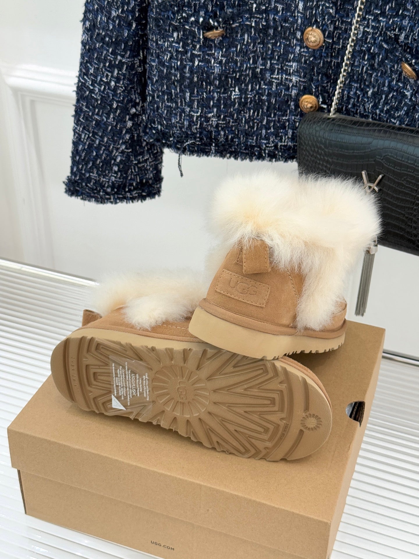UGG Classic Ultra Mini Chalet Boots Warm Brown Suede Sheepskin Cuff 517488