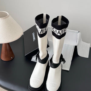 CC 25 Long Boot Blue Black Denim Fabric Calfskin 515271