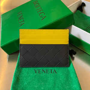 BV Credit Card Case Black Yellow Intrecciato Leather