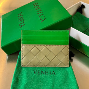 BV Credit Card Case Gray Blue Intrecciato Leather