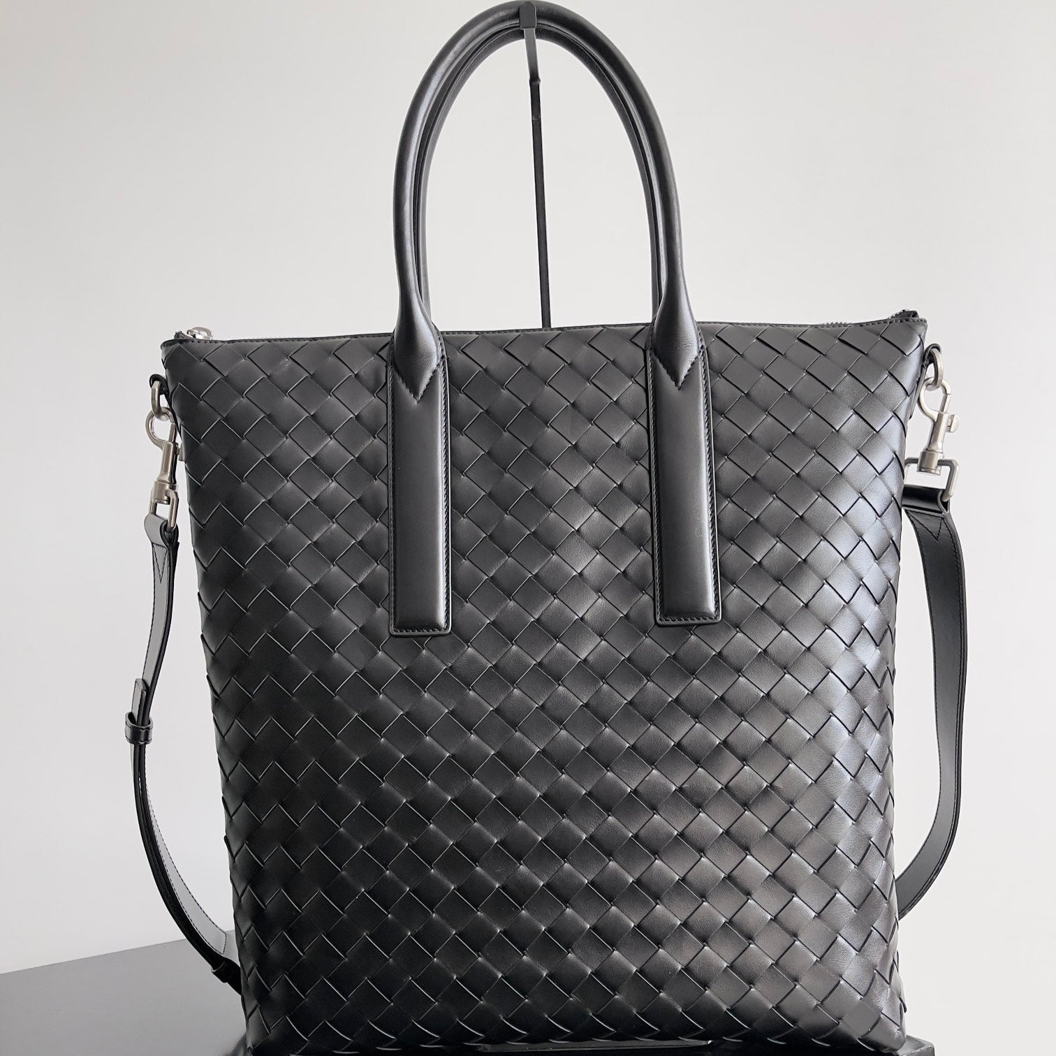 BV 25 Zipped North-South Tote 33.5cm Black Intrecciato Leather