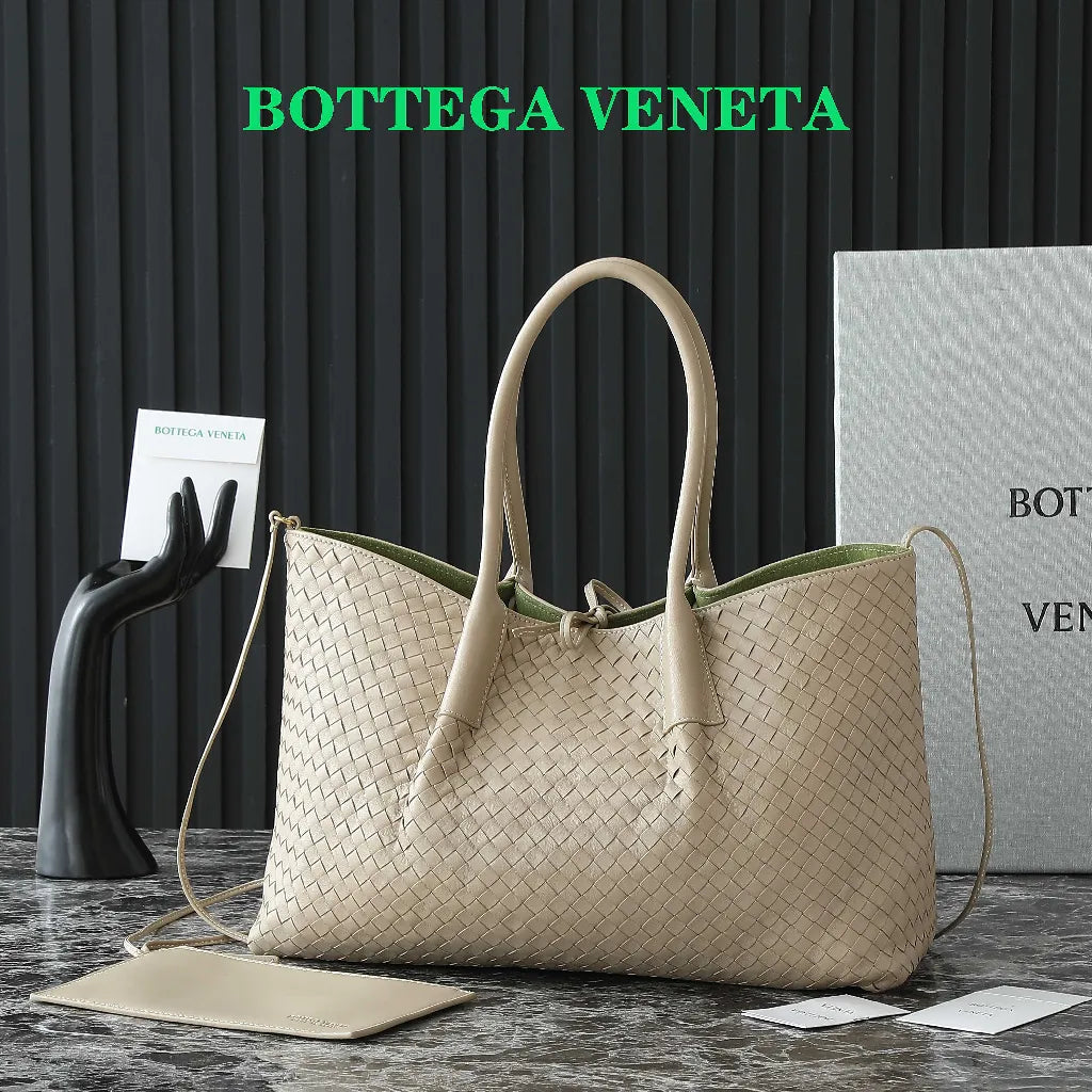 BV Pinacoteca Bag 43cm Beige Intrecciato Calfskin & Suede