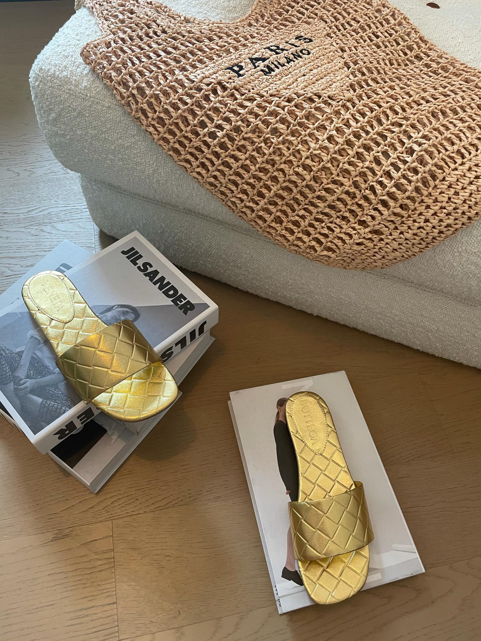 amy flat mule gold metalic lambskin