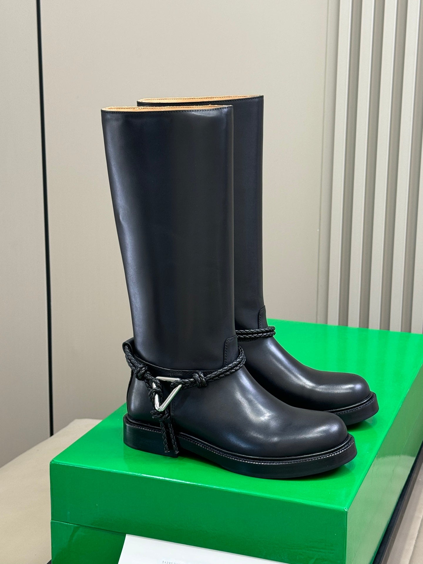 BV 25FW James Boots With Coaxial Detailing And Signature Metal Triangle in Black Calfskin