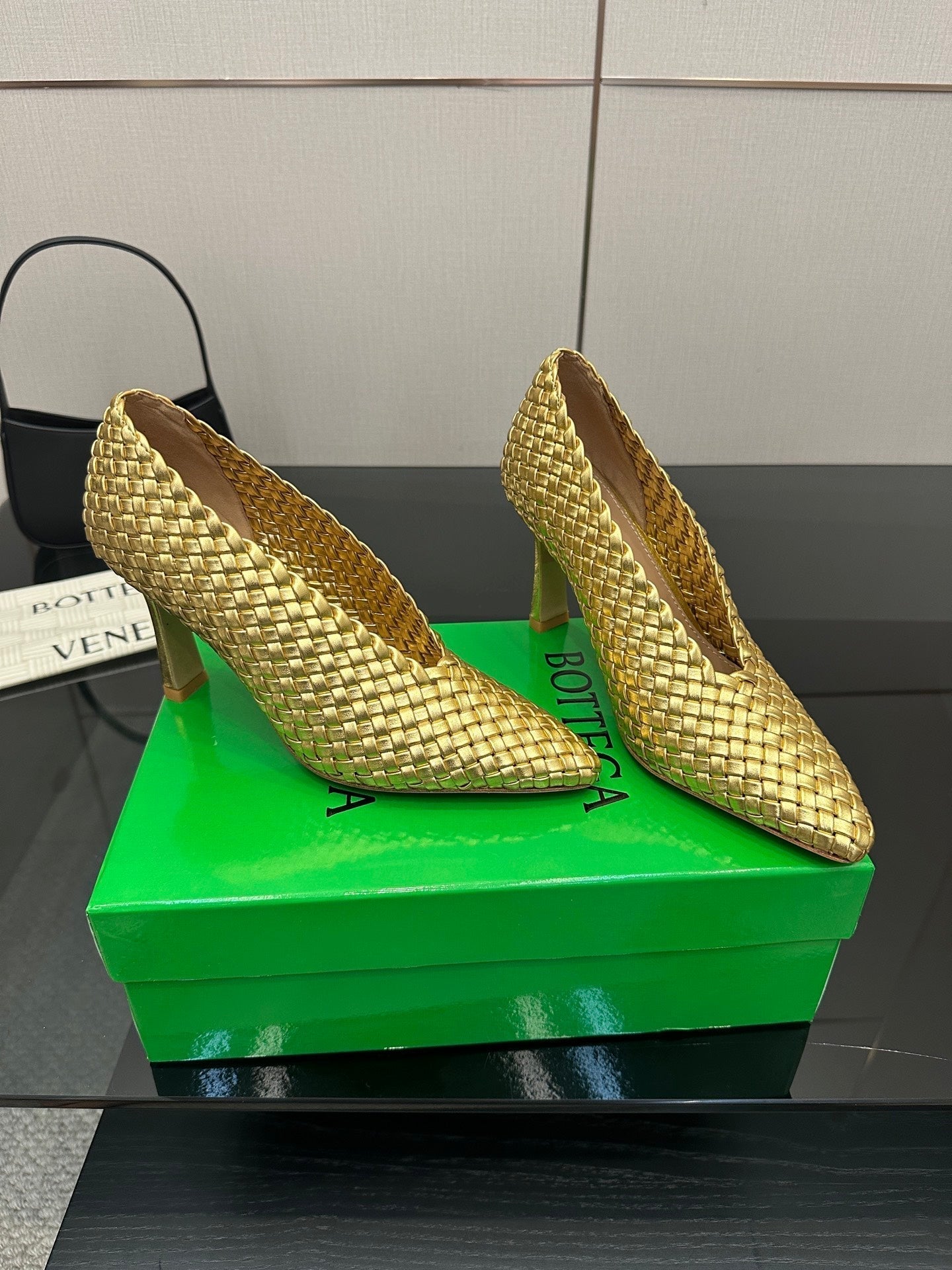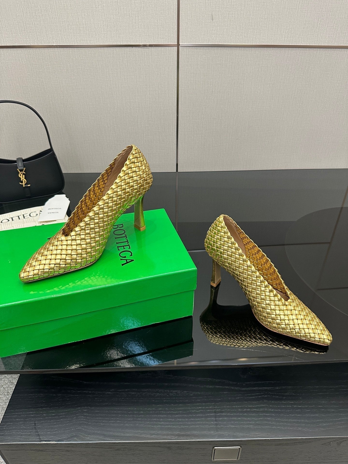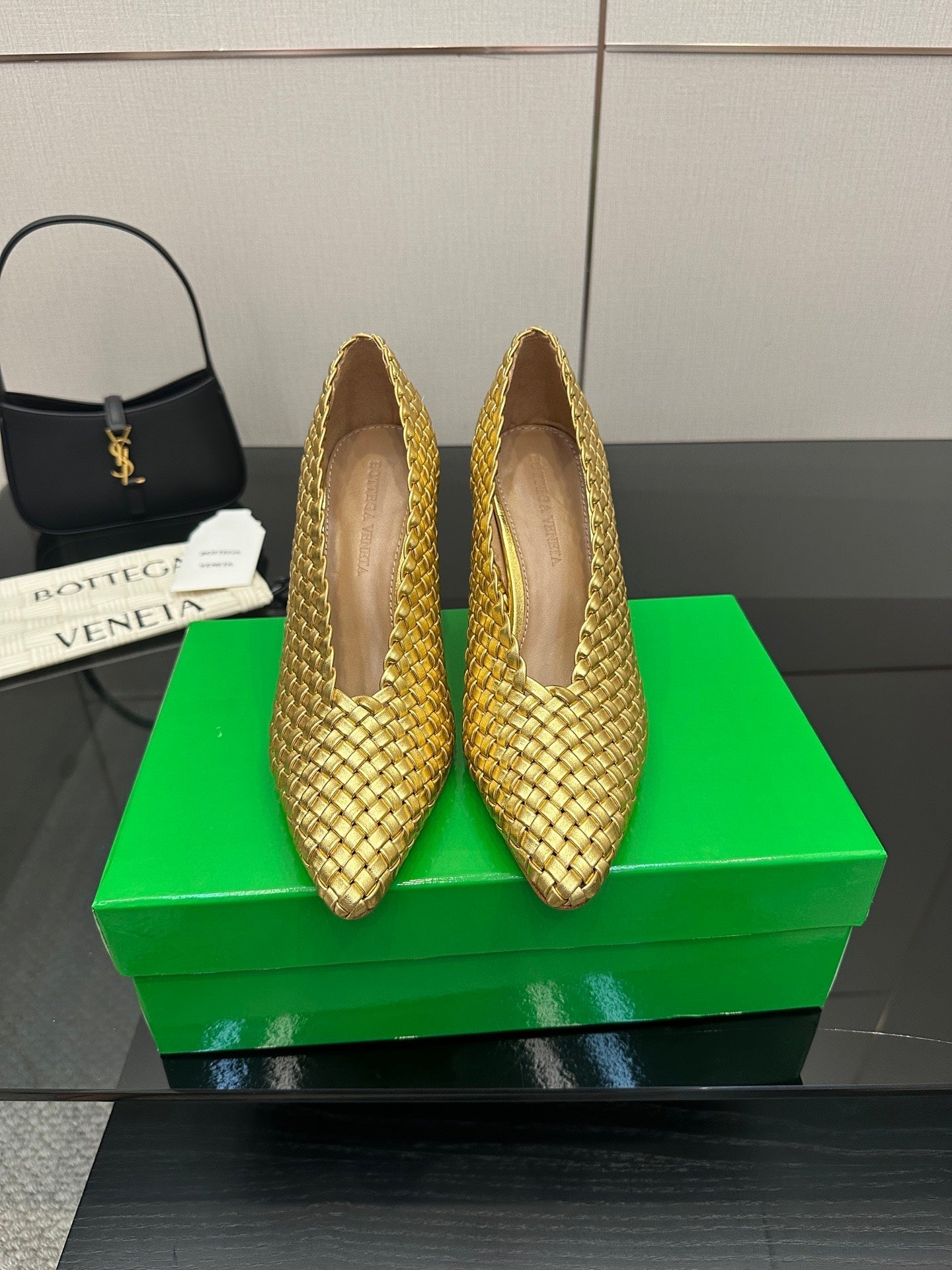 BV Sofia Pump 90mm Gold Intreccio leather 427649