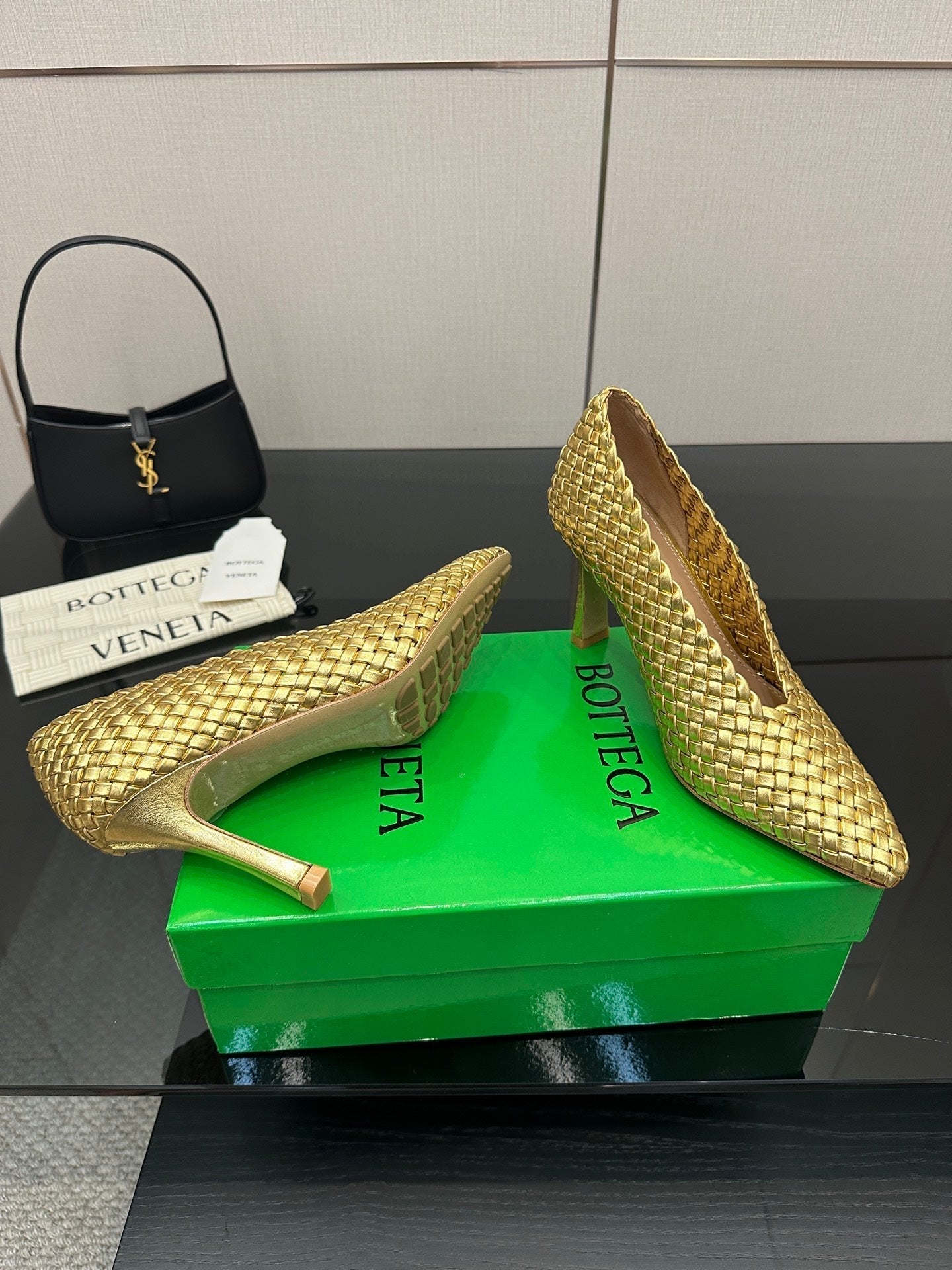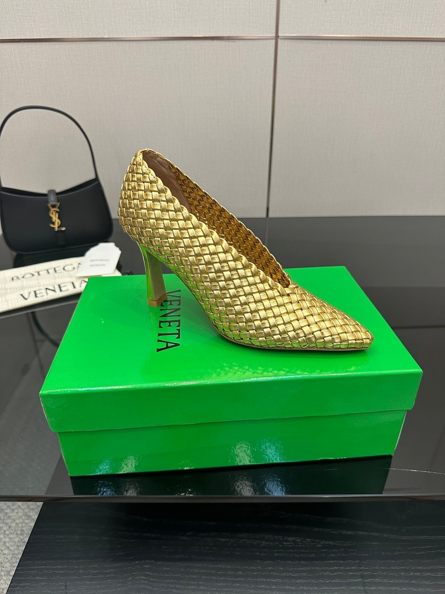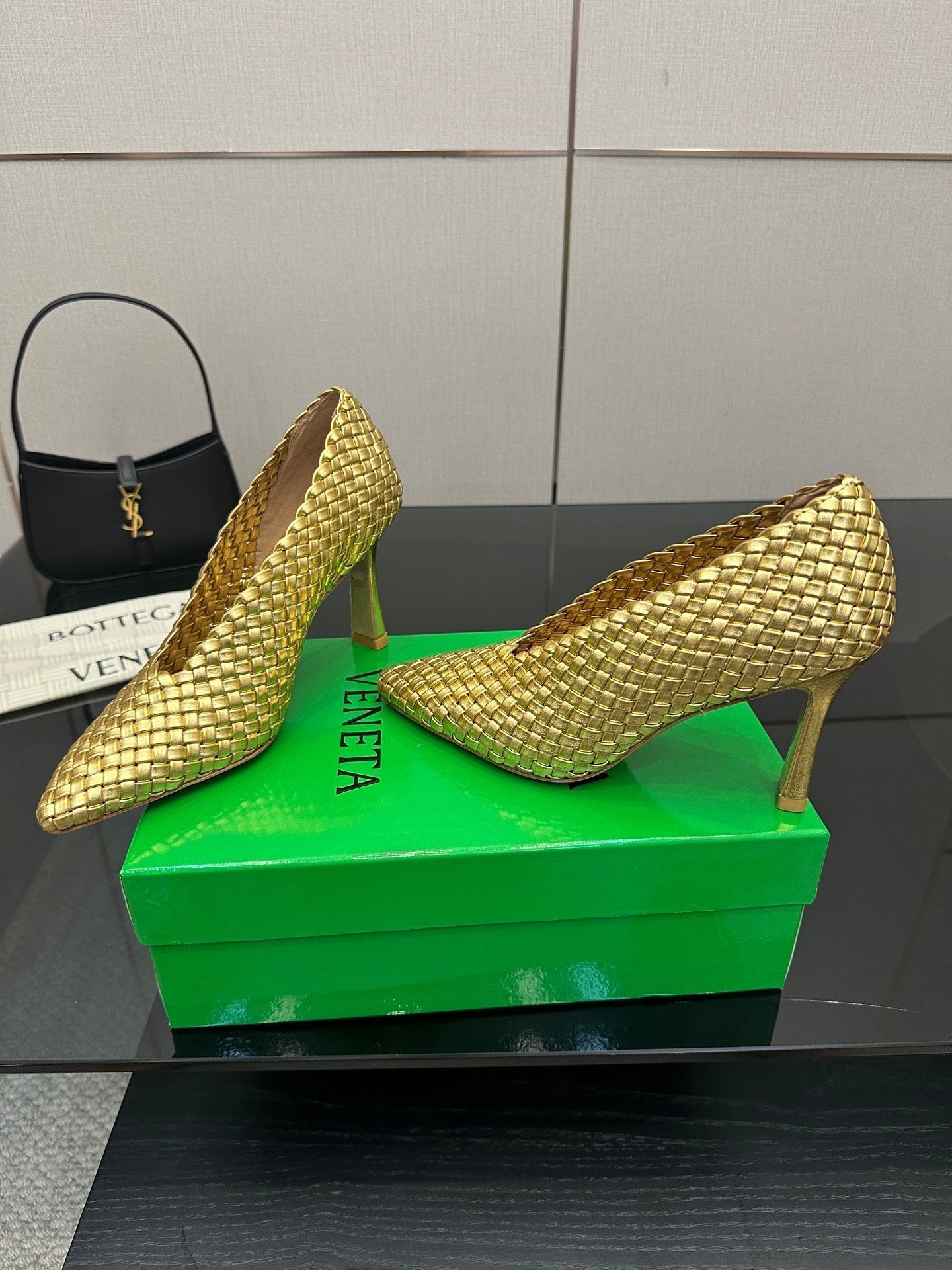 BV Sofia Pump 90mm Gold Intreccio leather 427649