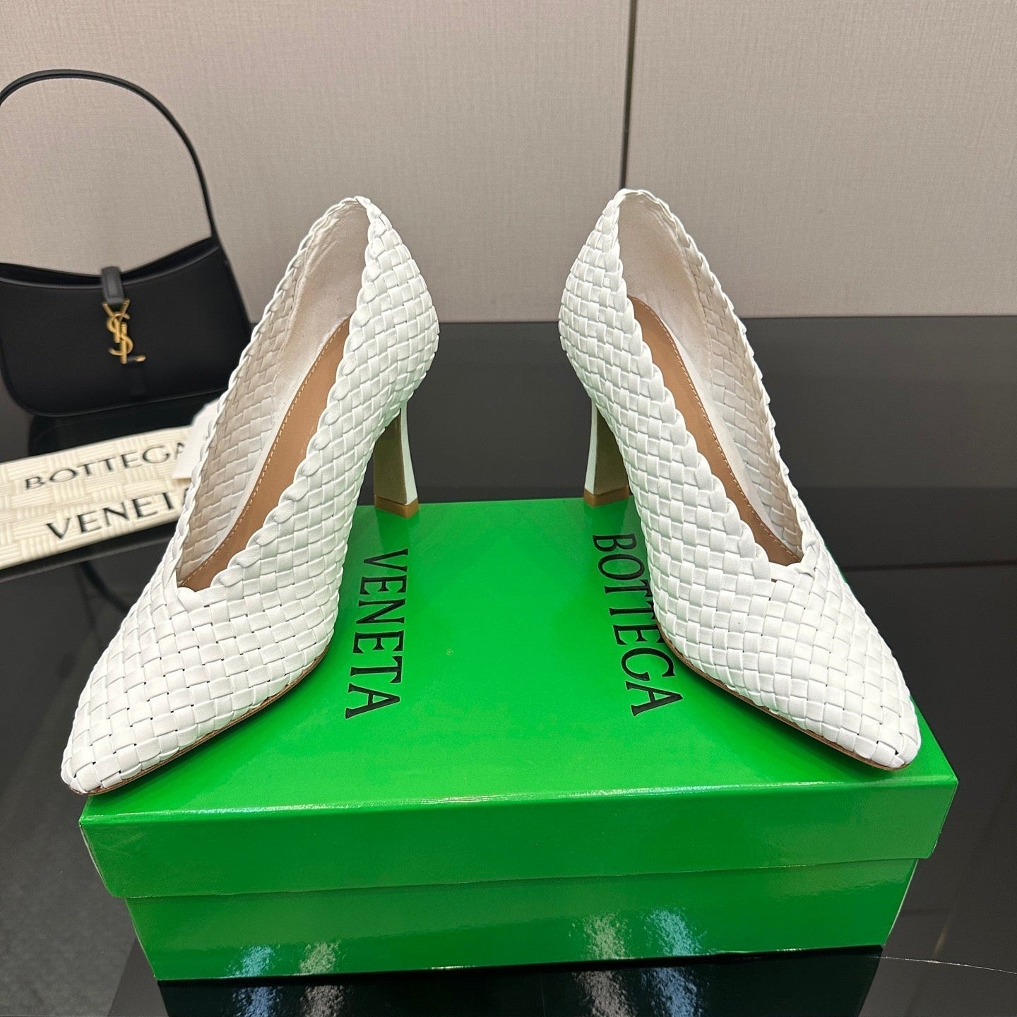 BV Sofia Pump 90mm White Intreccio leather 427650