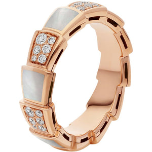 SERPENTI RING PINK GOLD MOP DIAMOND PAVED 4MM