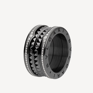 ZERO 1 ROCK FOUR-BAND BLACK CERAMIC WITH STUDDED SPIRAL AND PAVED DIAMONDS RING