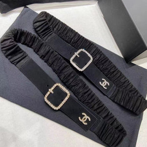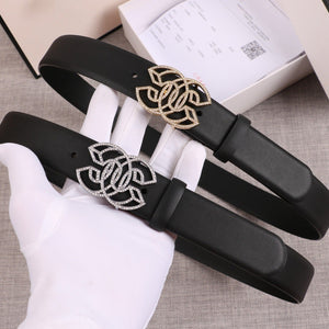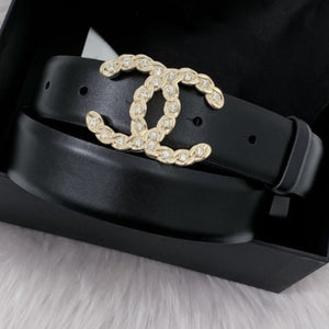 CC WOMEN'S BELT 3.0CM LEATHER BLACK BUCKLE GOLD DIAMOND