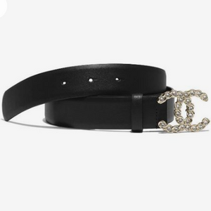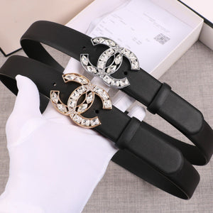 CC WOMEN'S BELT 3.0CM LEATHER BLACK BUCKLE SILVER DIAMOND