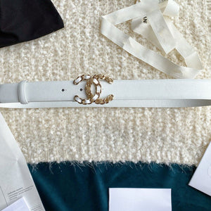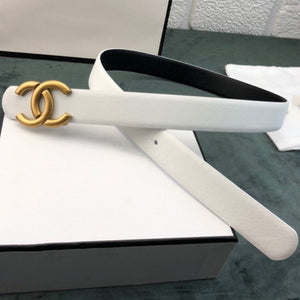 CC WOMEN'S BELT 3.0CM LEATHER WHITE BUCKLE GOLD CONVEX