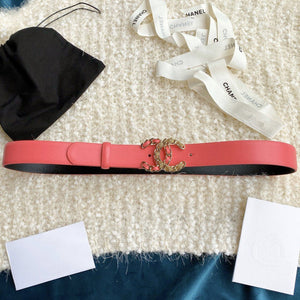 CC WOMEN'S BELT 3.0CM BUCKLE PINK GOLD LEATHER RED