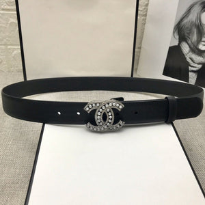 CC WOMEN'S BELT 3.0CM BUCKLE PEARL DIAMOND LEATHER BLACK